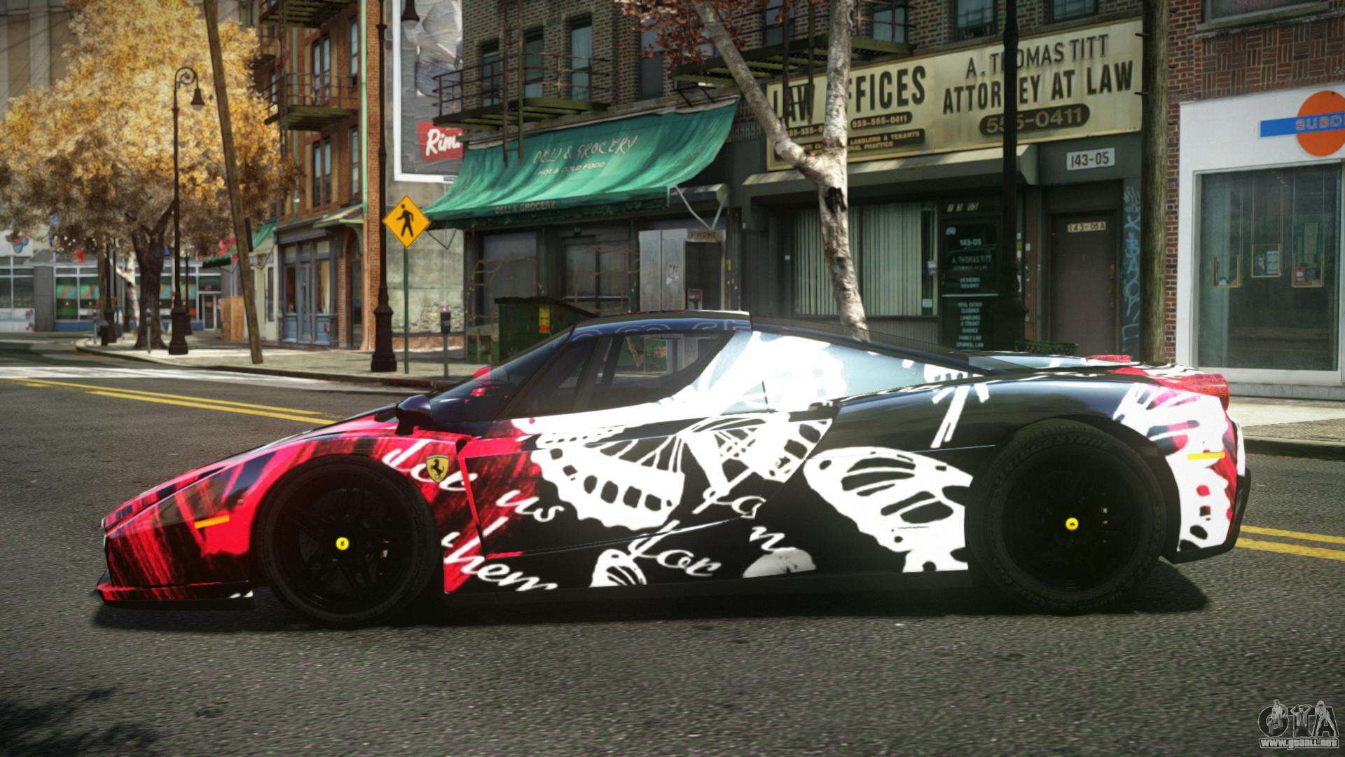 El mod Ferrari Enzo Nathfer S1 para GTA 4 se puede descargar a continuación en los enlaces. La modificación se instala automáticamente por defecto para reemplazar el Feltzer, y con la ayuda de nuestro instalador puedes sustituirlo por cualquier vehículo estándar de juego.