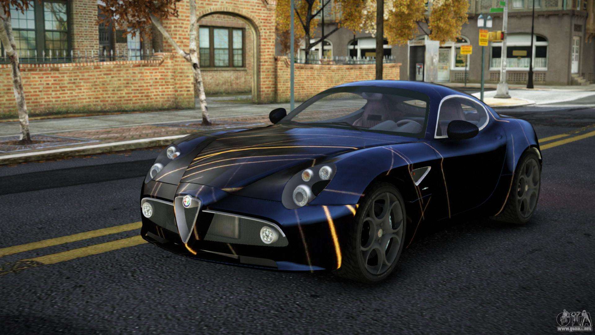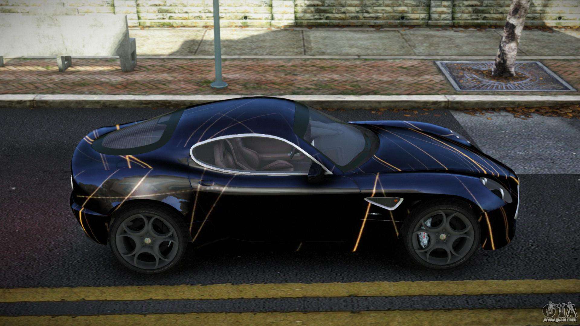 ¡Esto es lo que necesitas! Sigue los enlaces de abajo para descargar gratis el mod Alfa Romeo 8C Dervia S8 para GTA 4. La configuración por defecto es reemplazar la Banshee, o con la ayuda del mismo instalador puedes sustituirla por cualquier transporte estándar.