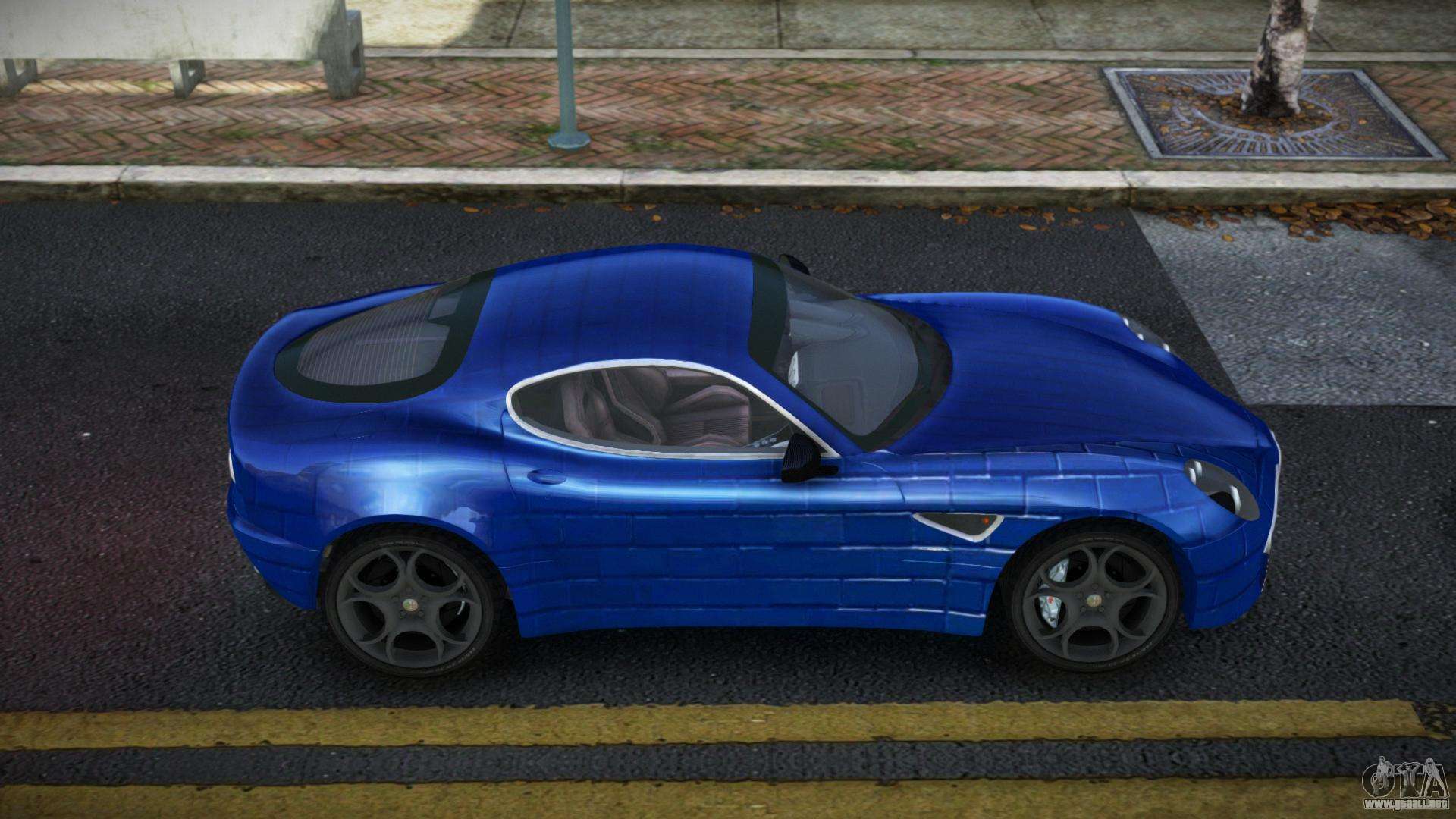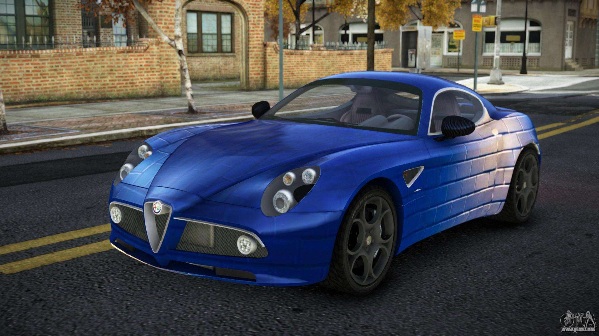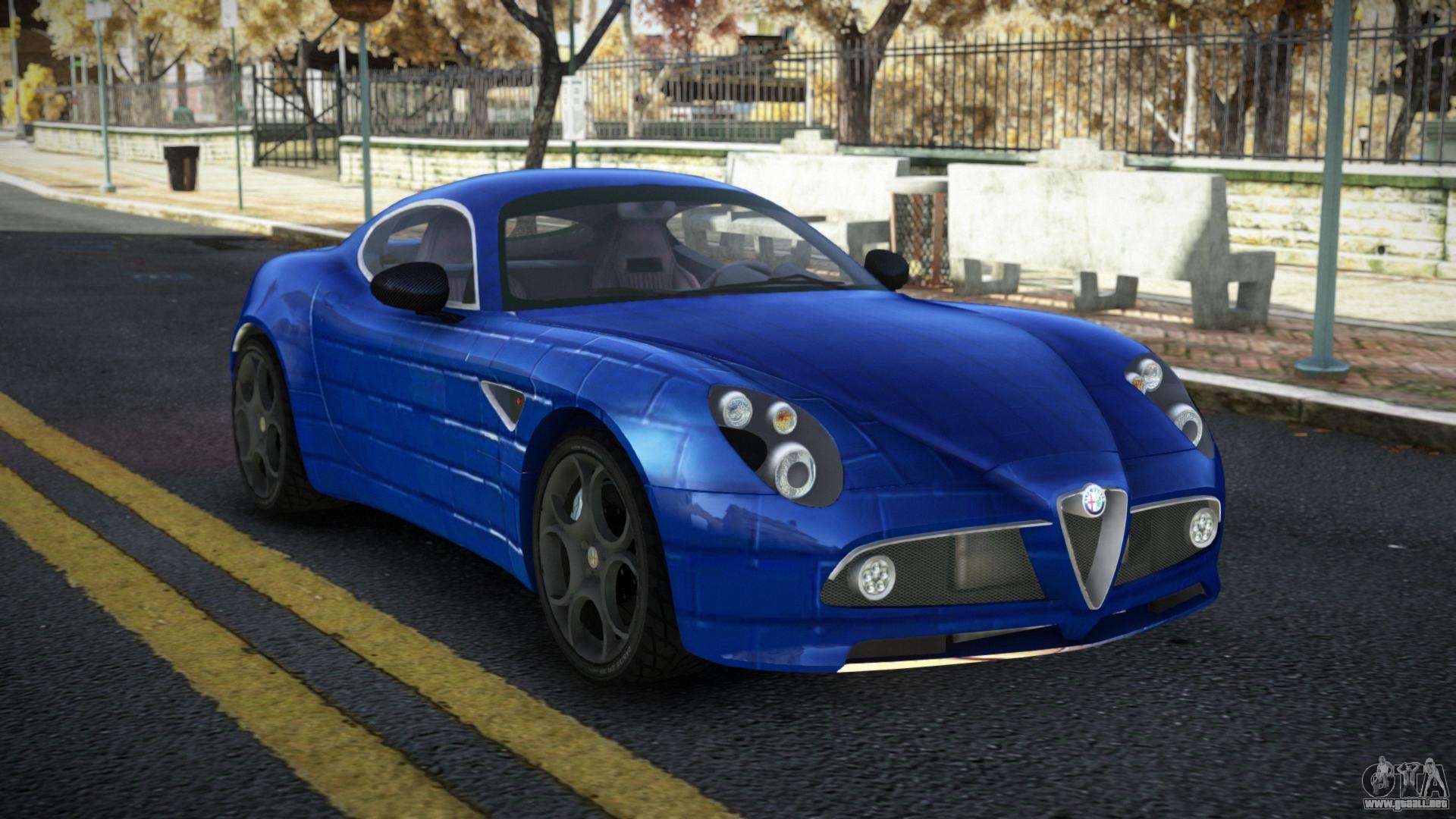 El mod Alfa Romeo 8C Dervia S13 para GTA 4 se puede descargar a continuación en los enlaces. La modificación se instala automáticamente por defecto para reemplazar la Banshee, y con la ayuda de nuestro instalador también puedes sustituirla por cualquier vehículo estándar del juego.