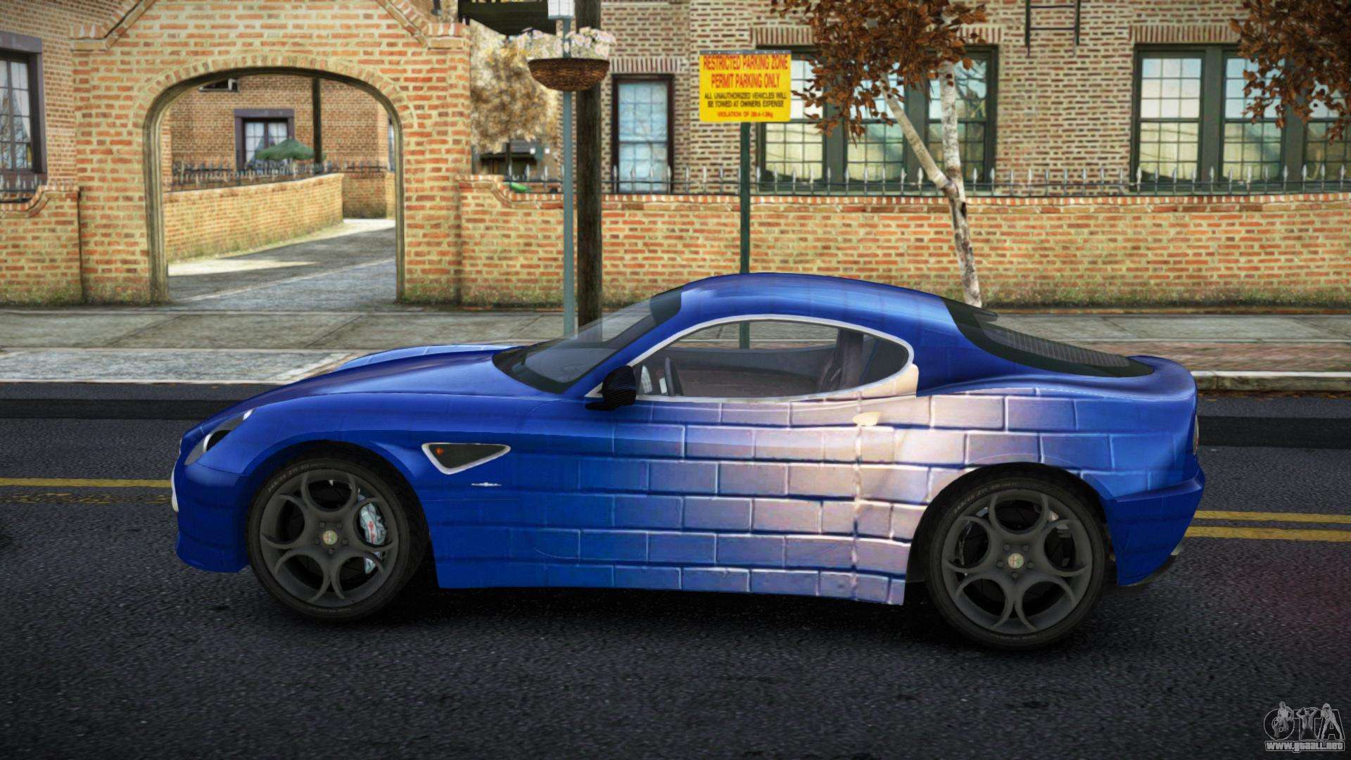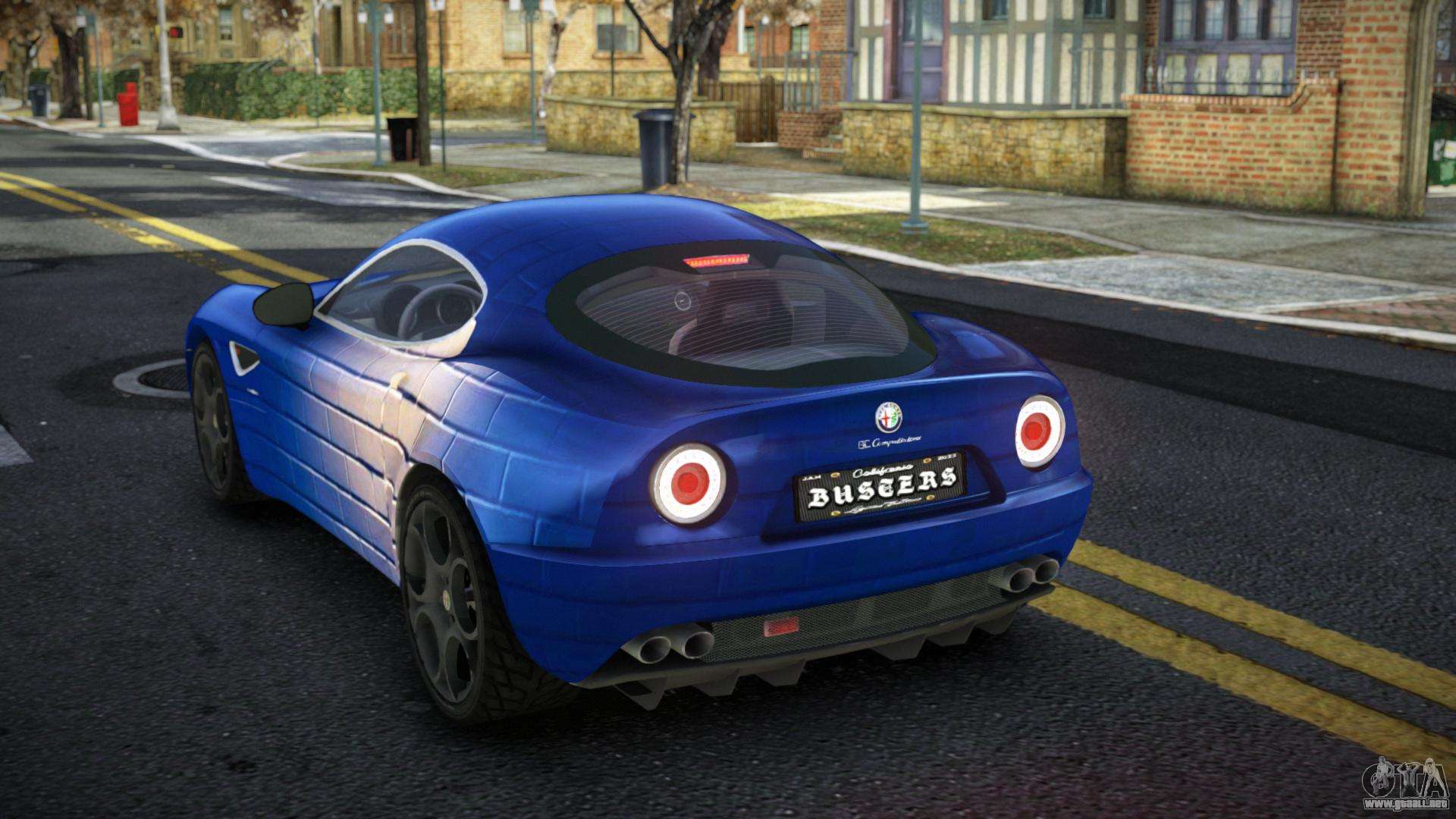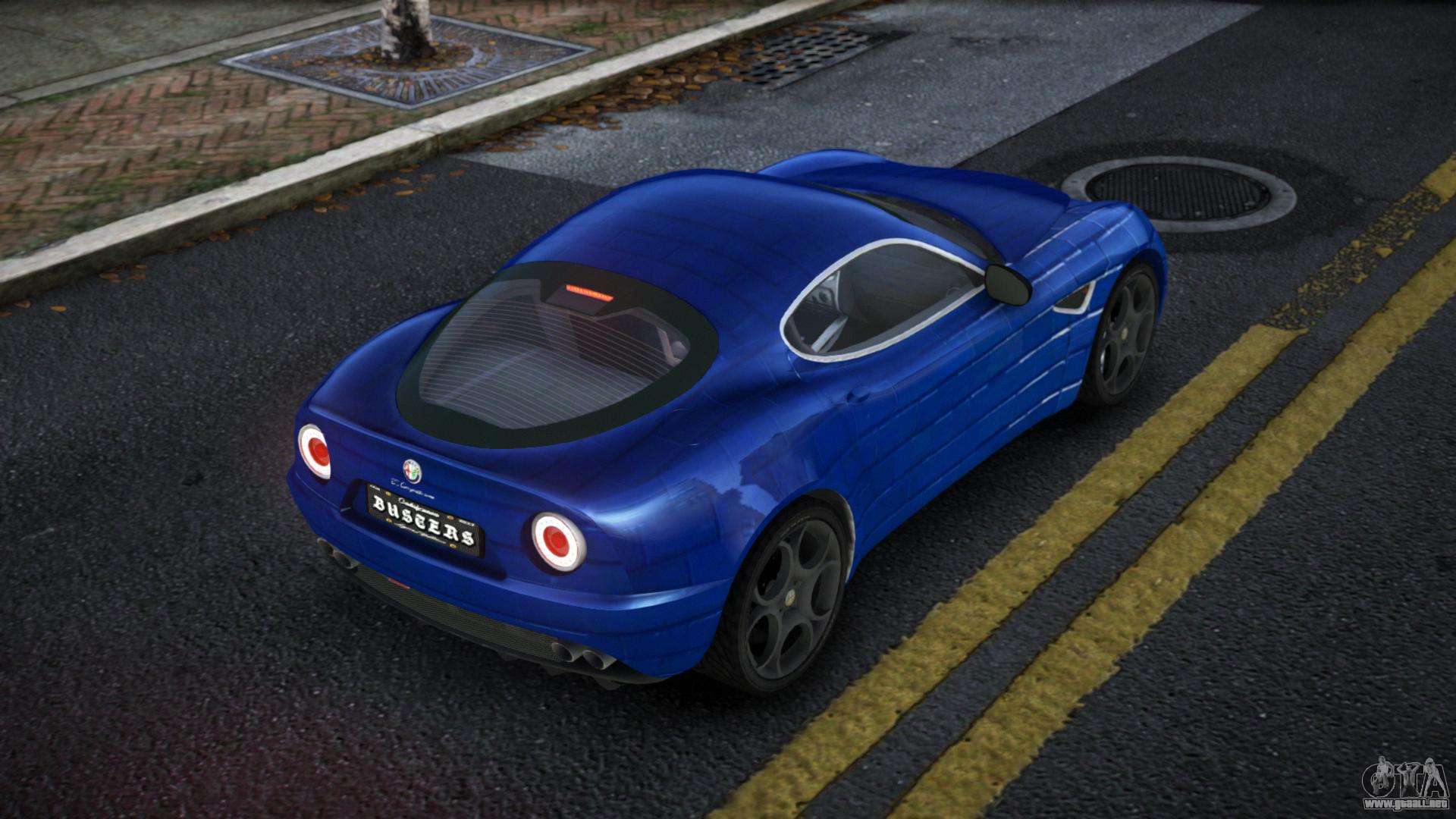 El mod Alfa Romeo 8C Dervia S13 para GTA 4 se puede descargar a continuación en los enlaces. La modificación se instala automáticamente por defecto para reemplazar la Banshee, y con la ayuda de nuestro instalador también puedes sustituirla por cualquier vehículo estándar del juego.