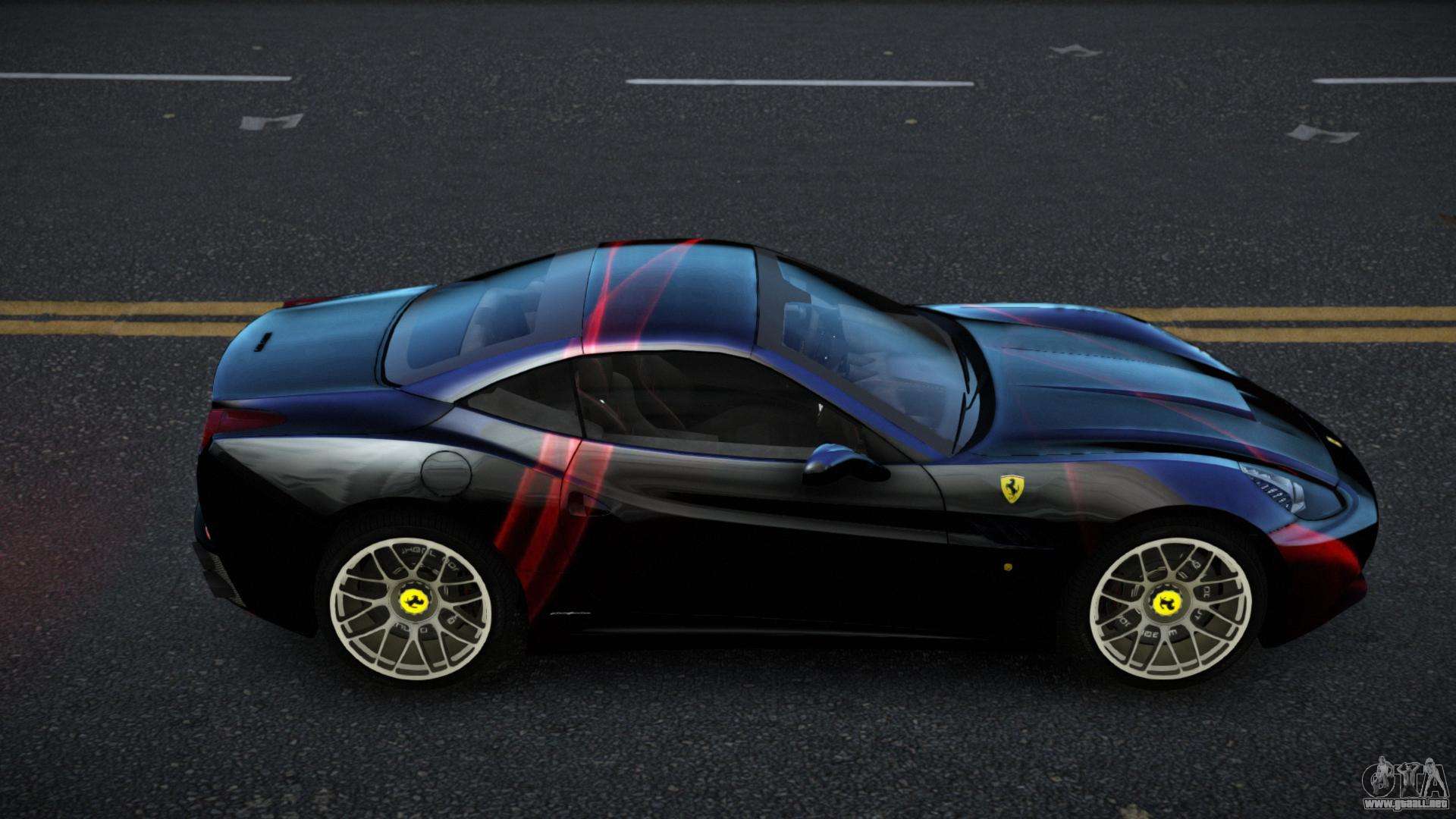 Puedes descargar gratis el mod de coche Ferrari California Evralia S13 para GTA 4 haciendo clic en el enlace de abajo. Instalación automática, por defecto para reemplazar a Feltzer, o con la ayuda del instalador puedes seleccionar cualquier otro coche estándar del juego.