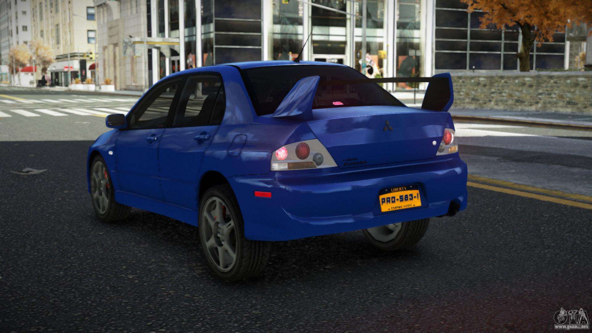 Puedes apreciar todo el encanto del coche descargando el mod Mitsubishi Lancer Evo Midetufas para GTA 4 haciendo clic en los enlaces de abajo. El mod se instala automáticamente con dos clics, por defecto reemplaza al Almirante, o elige cualquier otro vehículo del juego que quieras transformar.