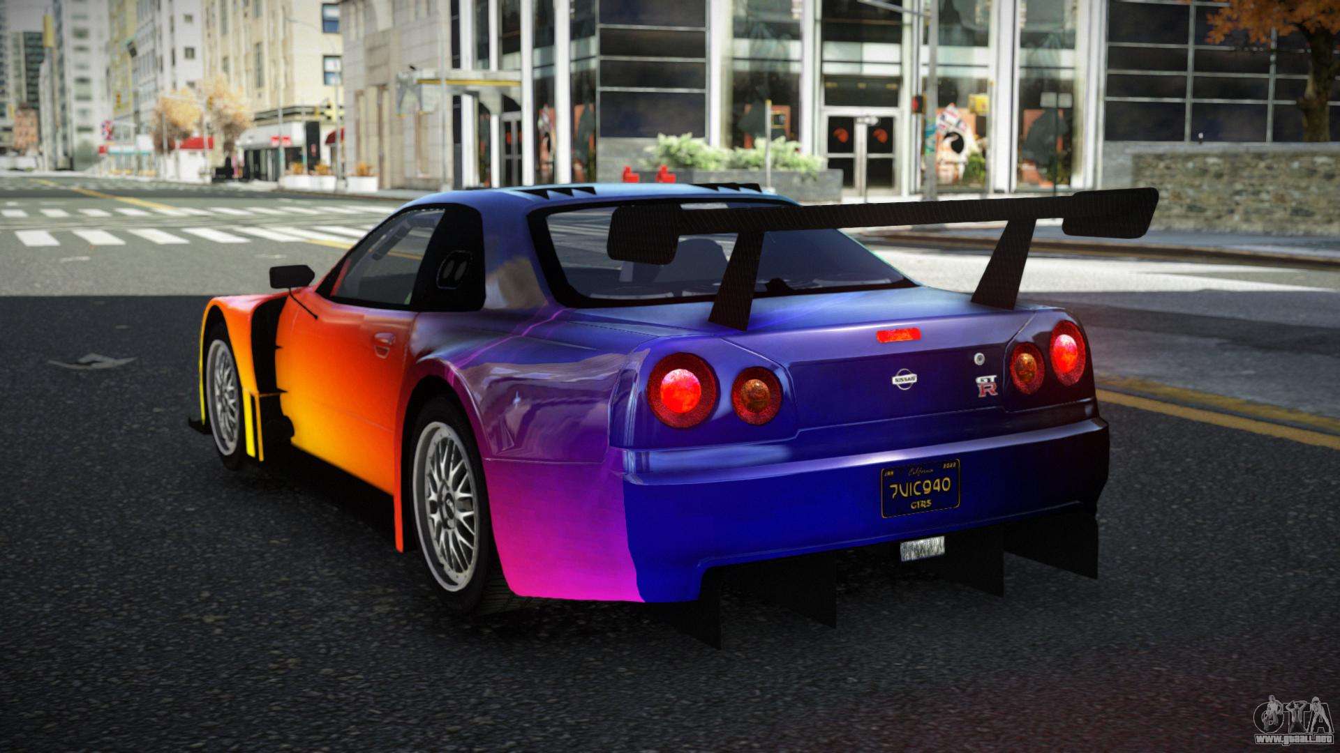 Puedes apreciar todo el encanto del coche descargando el mod Nissan Skyline R34 Tianlage S2 para GTA 4 haciendo clic en los enlaces de abajo. El mod se instala automáticamente con dos clics, por defecto reemplaza a la Banshee o elige cualquier otro vehículo del juego que quieras transformar.