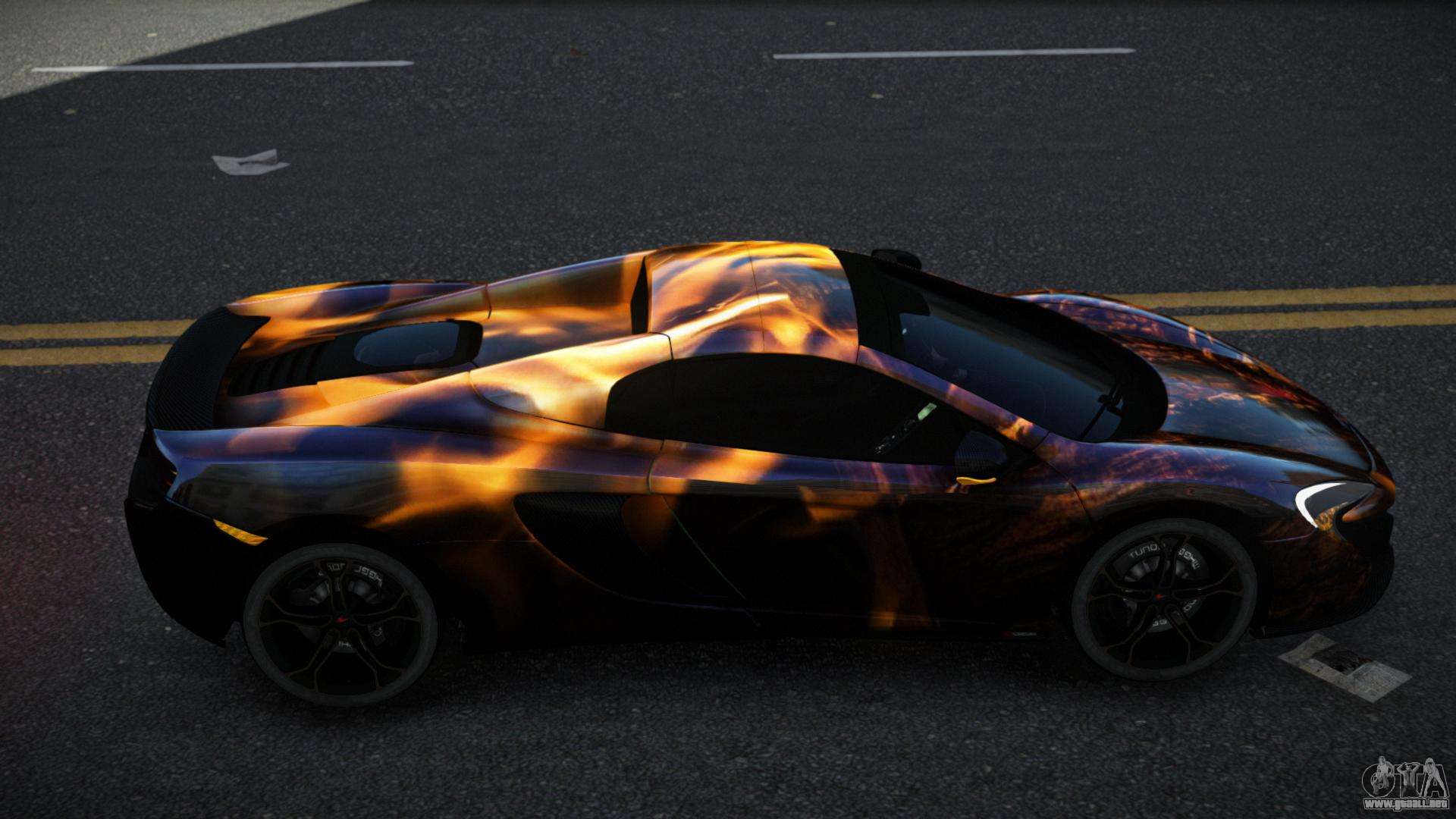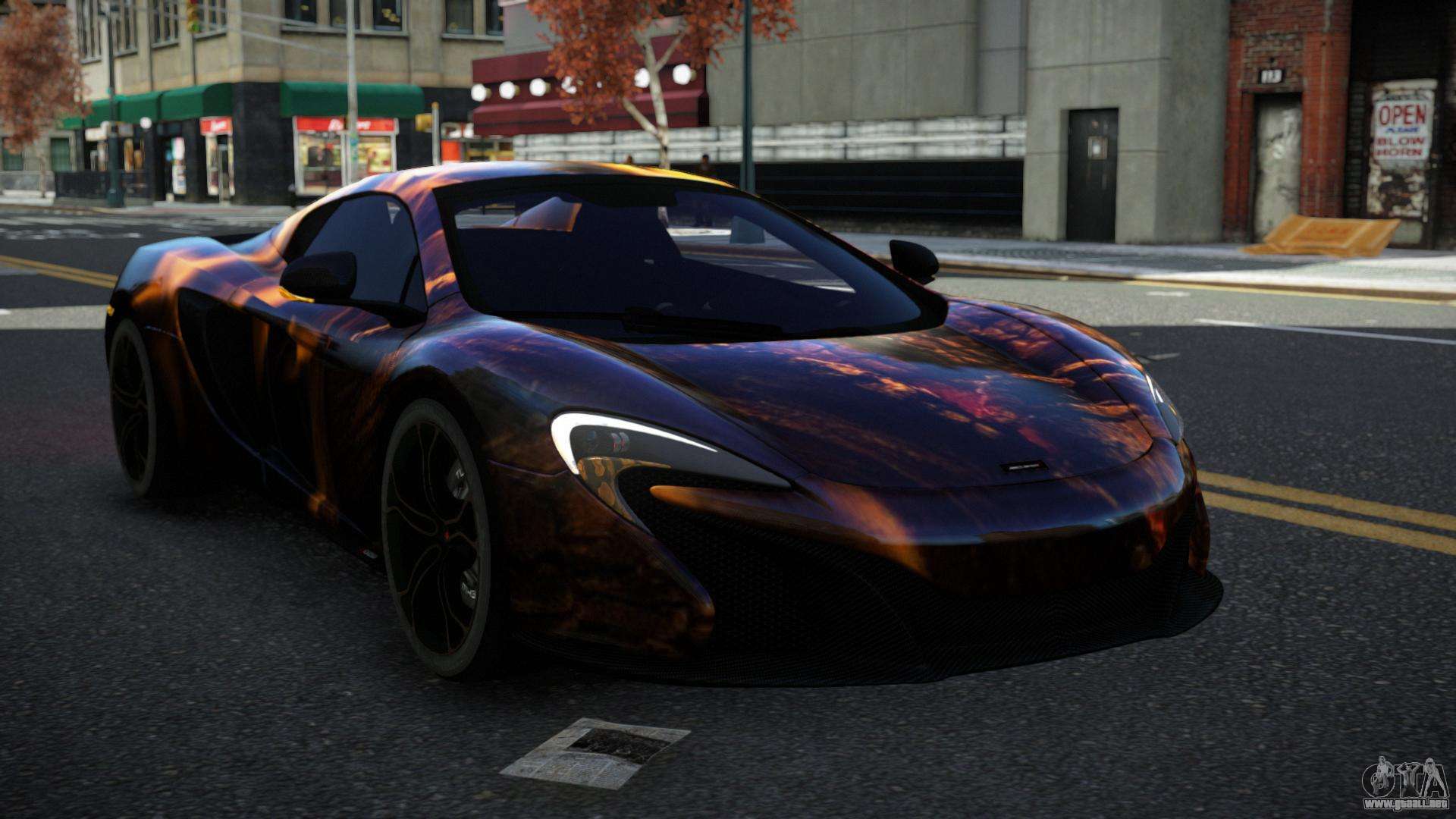 Puedes apreciar todo el encanto del coche descargando el mod McLaren 650S Dendary S12 para GTA 4 haciendo clic en los enlaces de abajo. El mod se instala automáticamente con dos clics, por defecto reemplaza a la Banshee o elige cualquier otro vehículo del juego que quieras transformar.
