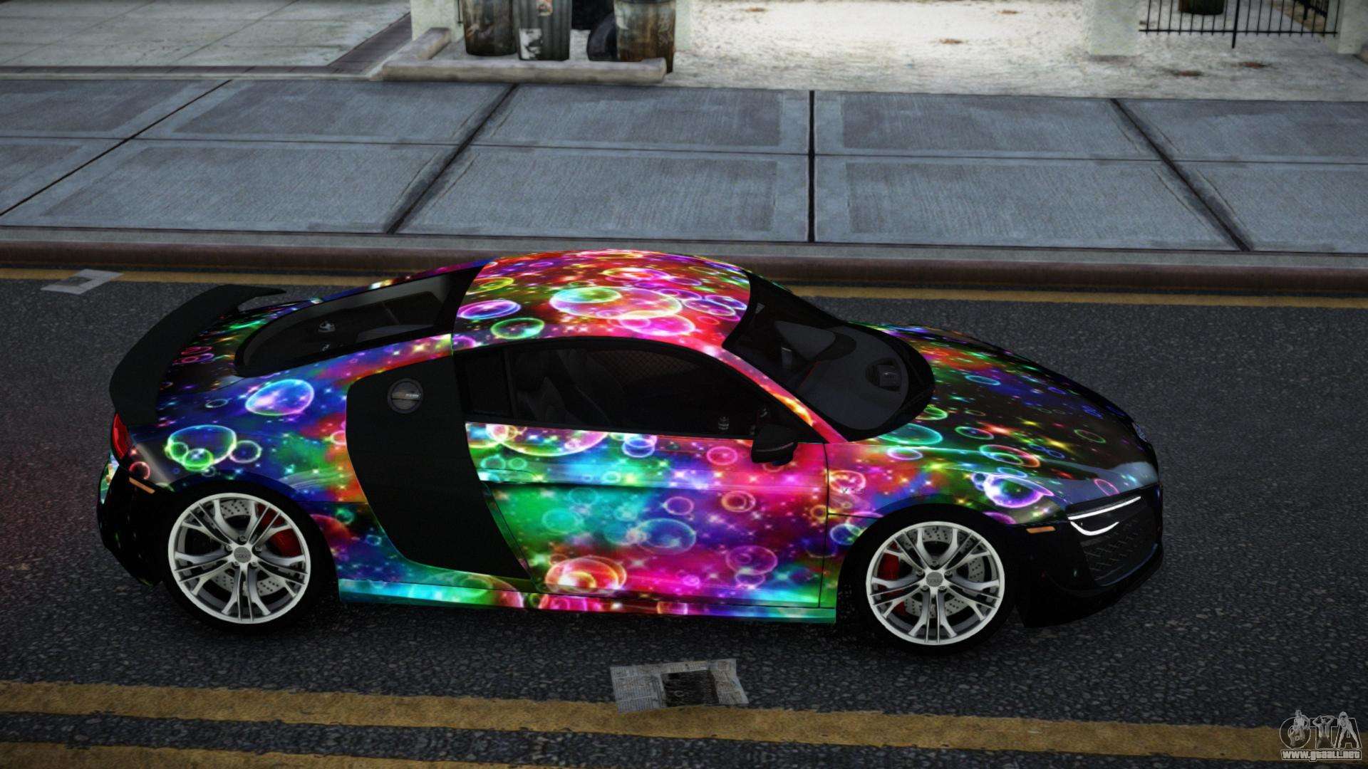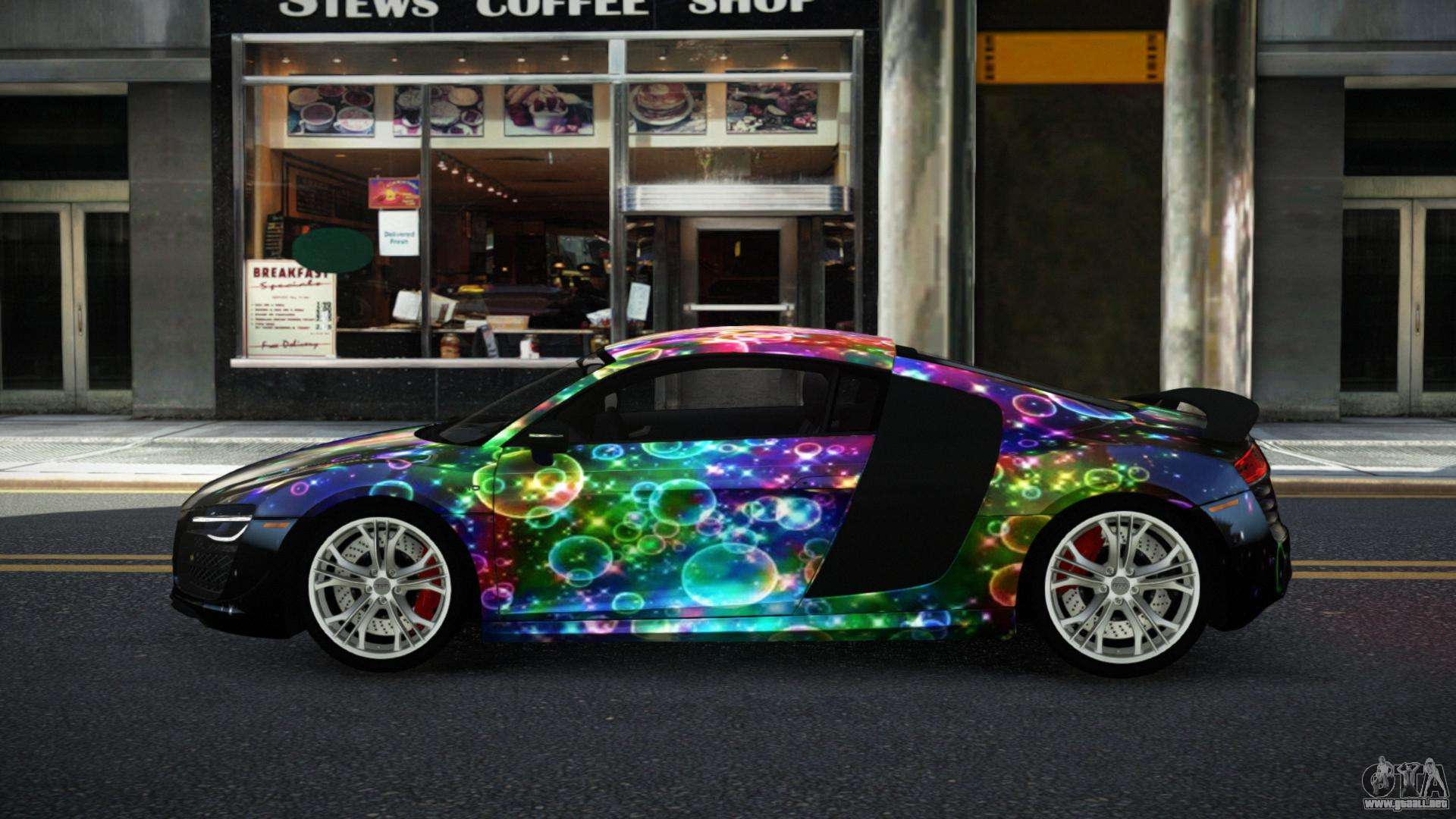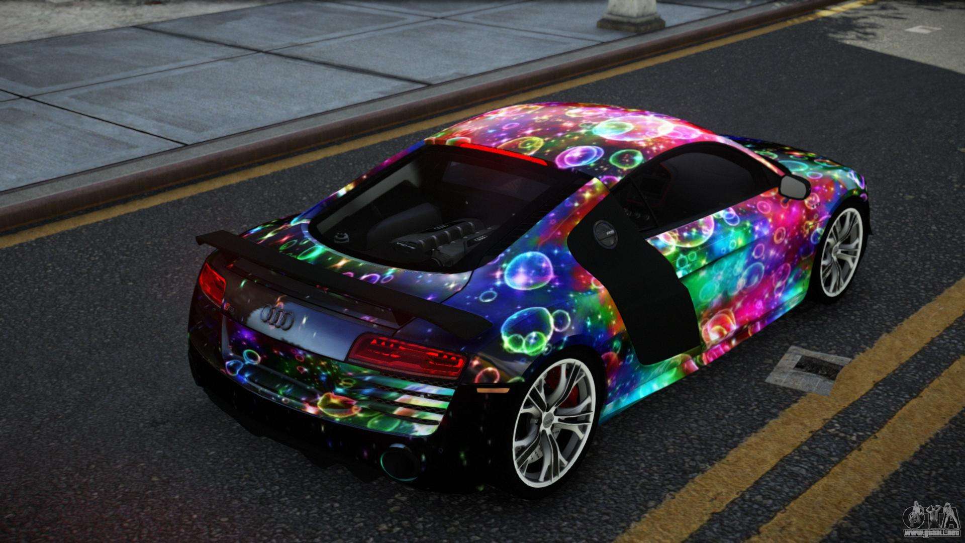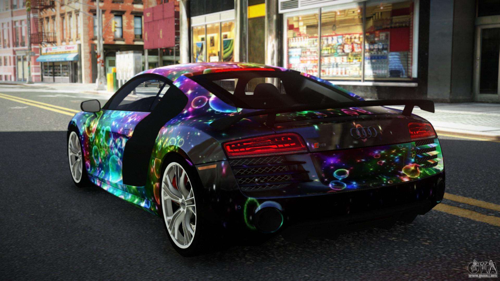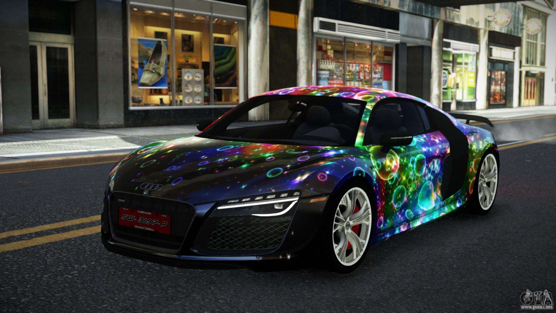 Puedes apreciar todo el encanto del coche descargando el mod Audi R8 Chtoel S2 para GTA 4 haciendo clic en los enlaces de abajo. El mod se instala automáticamente con dos clics, por defecto reemplaza a la Banshee o elige cualquier otro vehículo del juego que quieras transformar.
