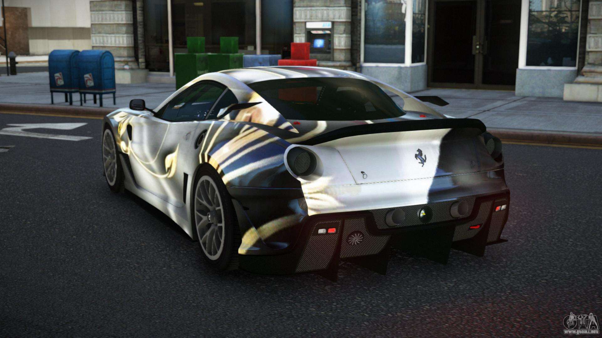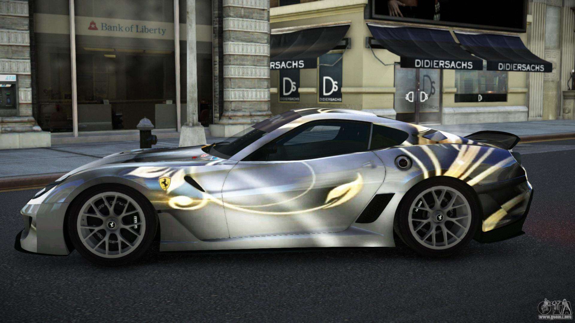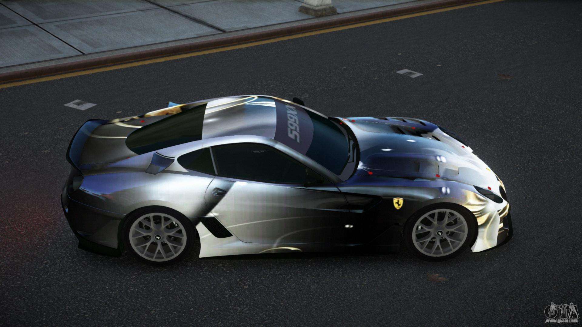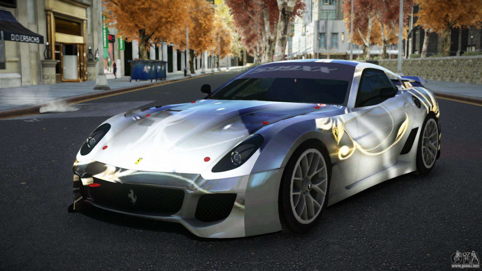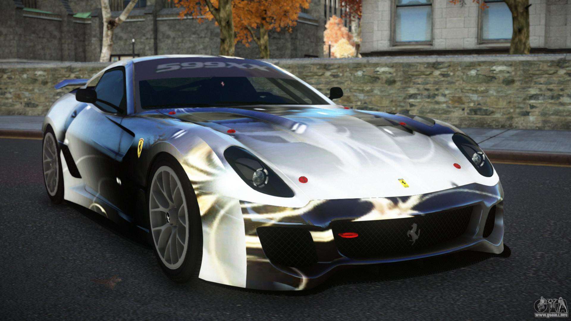 Puedes apreciar todo el encanto del coche descargando el mod Ferrari 599 Racaslee S2 para GTA 4 haciendo clic en los enlaces de abajo. El mod se instala automáticamente con dos clics, por defecto reemplaza a la Banshee o elige cualquier otro vehículo del juego que quieras transformar.