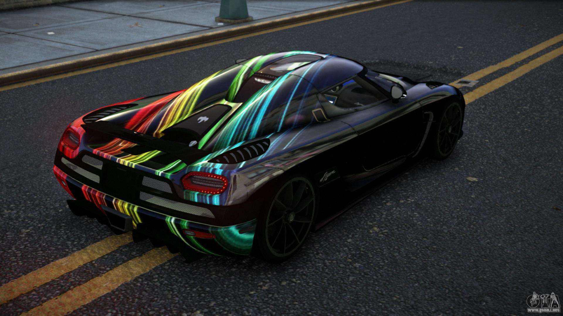 Para descargar gratis el mod Koenigsegg Agera Rivean S9 para GTA 4, solo tienes que hacer clic en los enlaces al final de la página. Nuestro instalador automático te ayudará a instalar el mod de reemplazo de Banshee en dos clics, o puedes elegir cualquier otro vehículo estándar del juego.