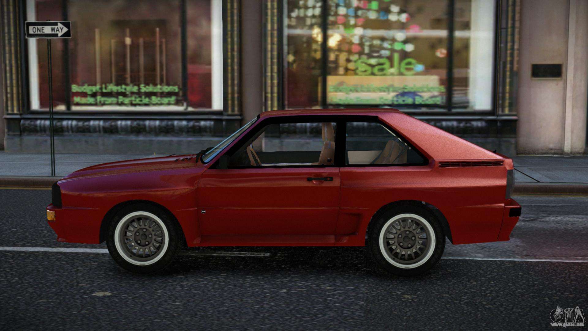 No te niegues el placer, sigue los enlaces de abajo y descarga el mod Audi Sport Quattro Yozuqaya para GTA 4. La instalación automática en dos clics reemplazará a Facción por defecto. Y además, gracias a nuestro instalador, puedes elegir qué coche estándar de juego quieres mejorar.