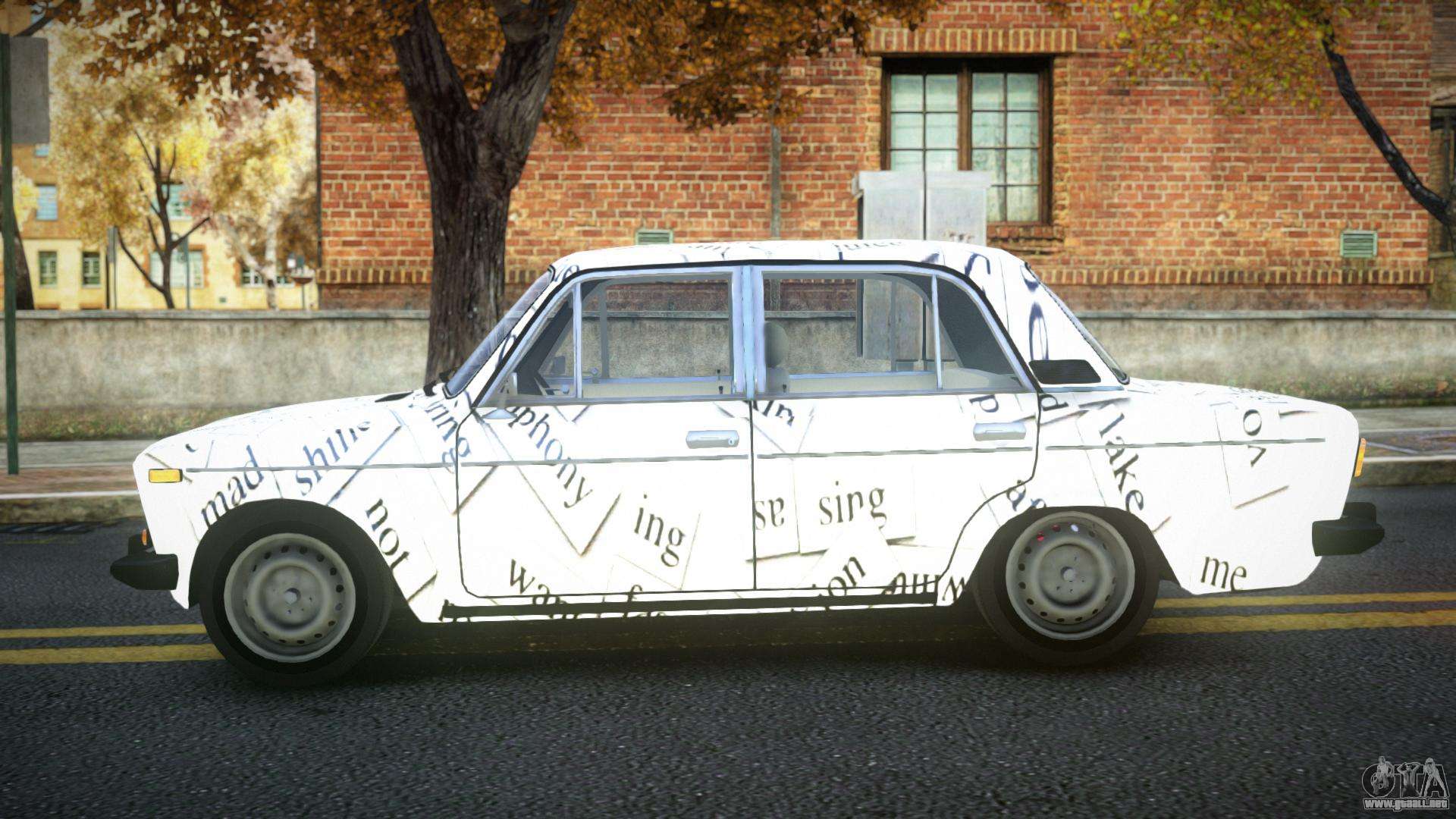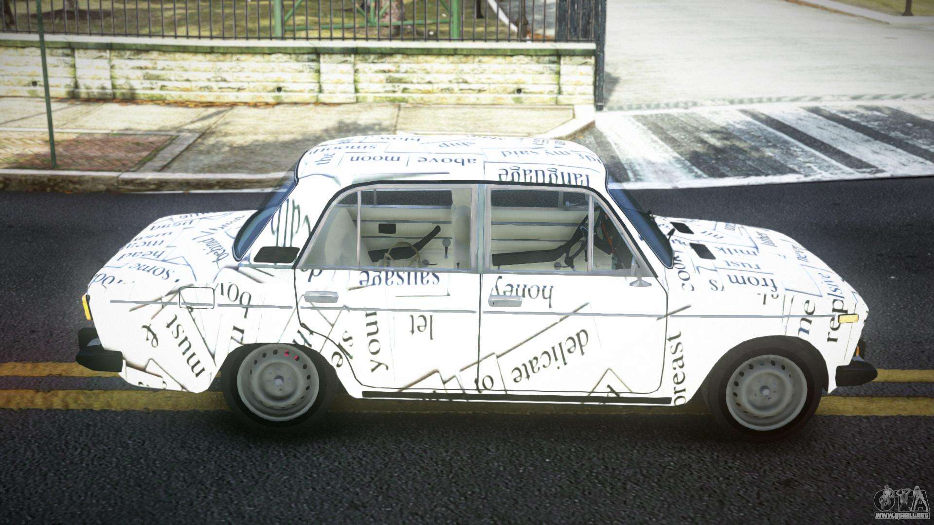 No te niegues el placer, sigue los enlaces de abajo y descarga el mod VAZ 2106 Zierat S5 para GTA 4. La instalación automática en dos clics, por defecto, reemplazará a Admiral. Y además, gracias a nuestro instalador, puedes elegir qué coche estándar de juego quieres mejorar.