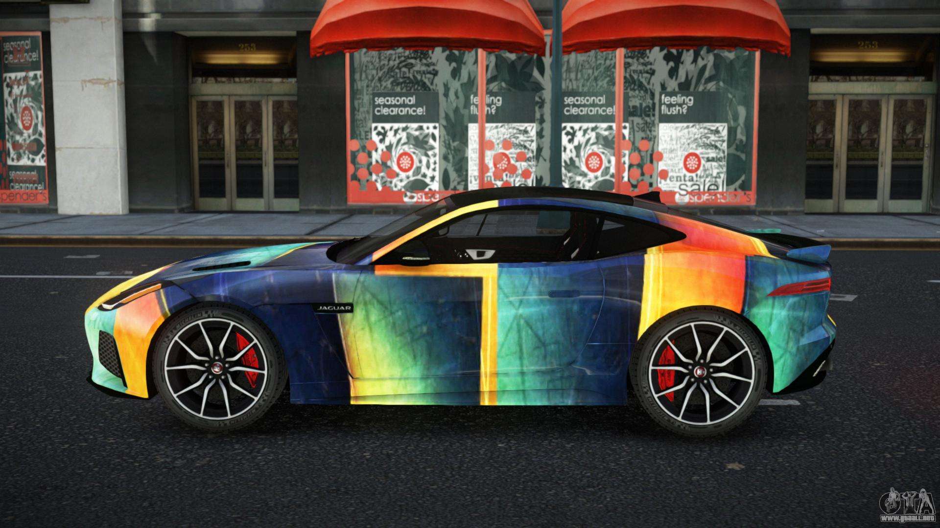 Puedes apreciar todo el encanto del coche descargando el mod Jaguar F-Type Jesitha S12 para GTA 4 haciendo clic en los enlaces de abajo. El mod se instala automáticamente con dos clics, por defecto reemplaza a la Banshee o elige cualquier otro vehículo del juego que quieras transformar.