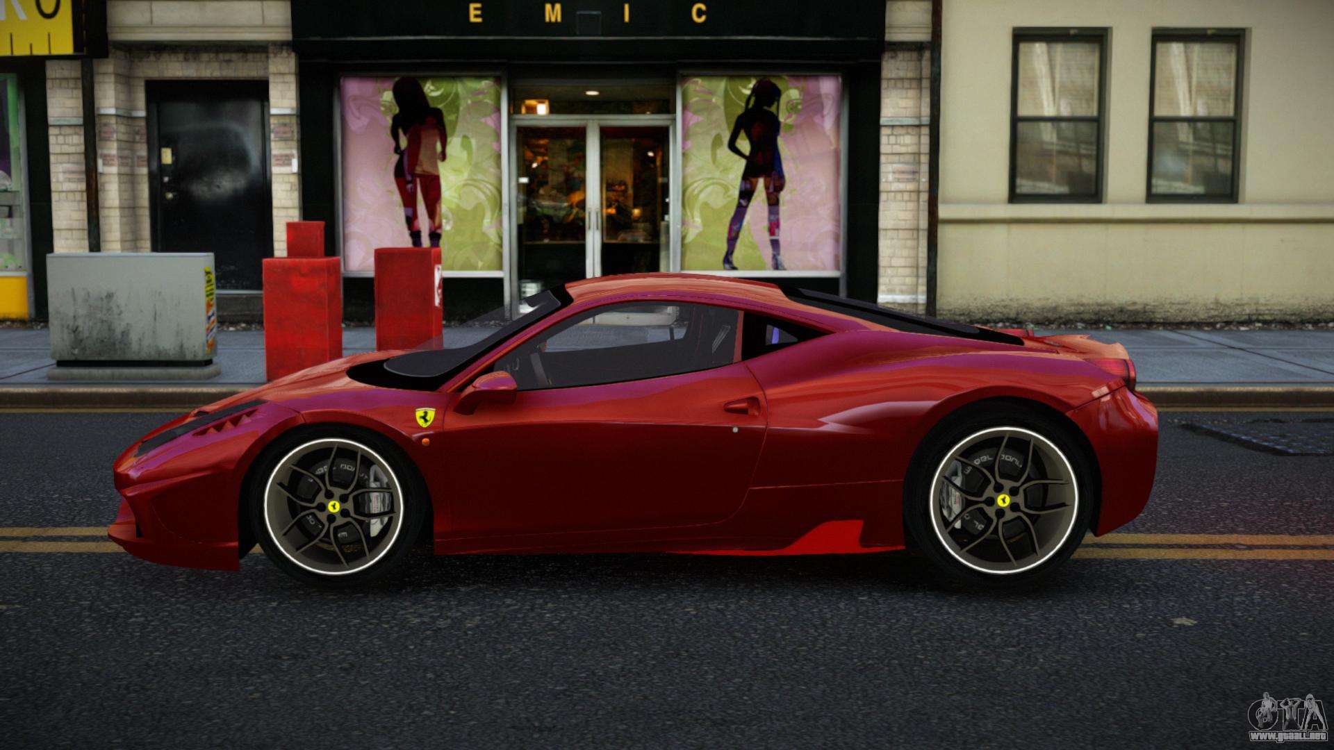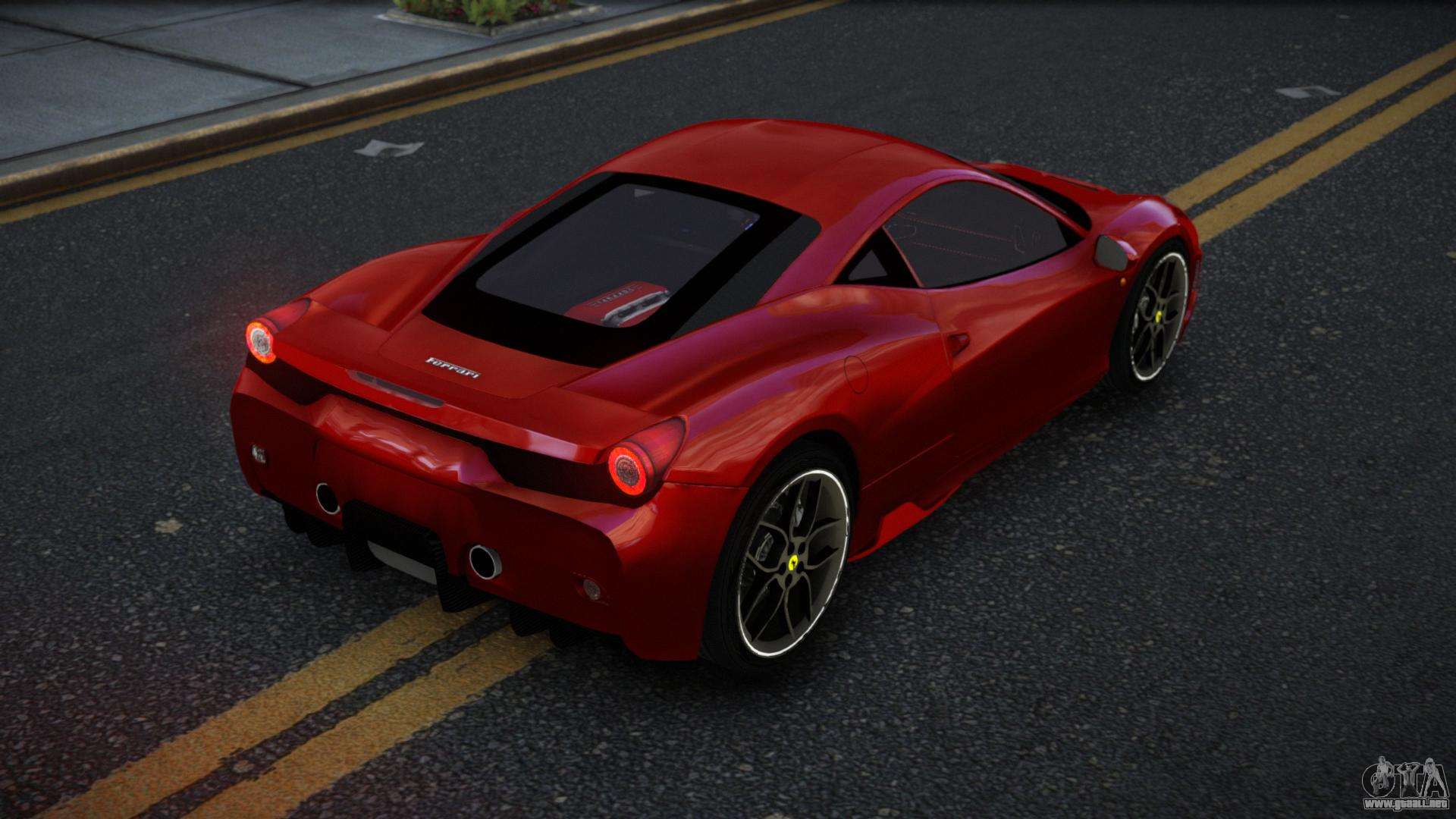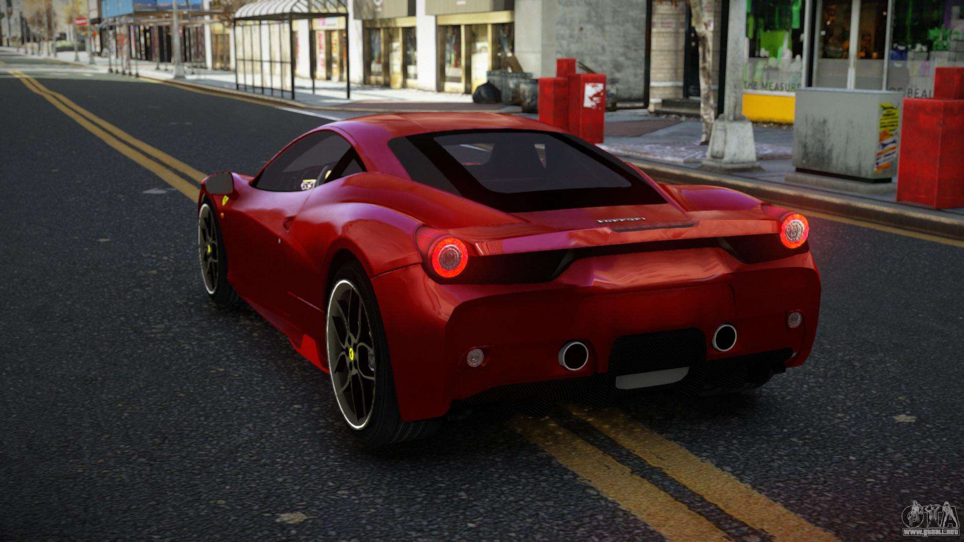 Puedes descargar gratis el mod de coche Ferrari 458 Ahemiry para GTA 4 haciendo clic en el enlace de abajo. Instalación automática, por defecto para reemplazar la Banshee, o con la ayuda del instalador puedes elegir cualquier otro coche estándar del juego.