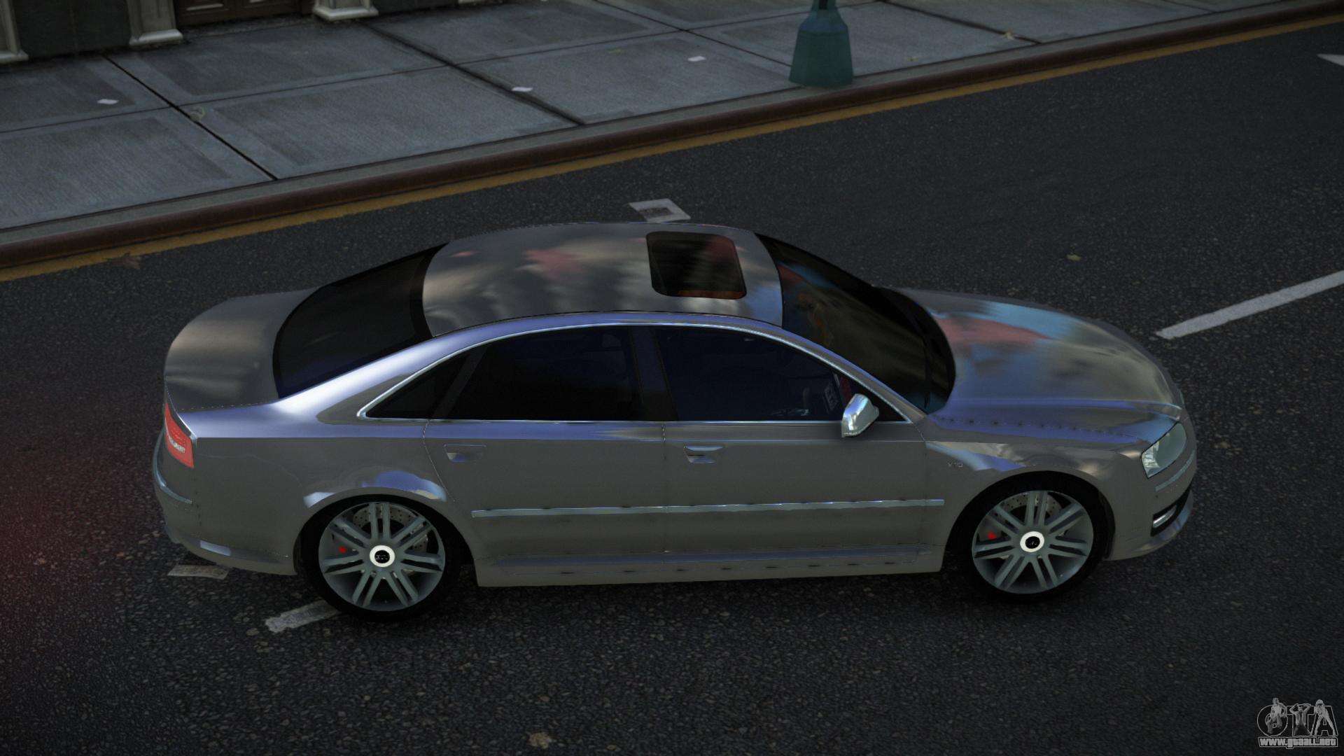 El mod Audi S8 Noaxa para GTA 4 se puede descargar a continuación en los enlaces. La modificación se instala automáticamente por defecto para reemplazar el Admiral, y con la ayuda de nuestro instalador también puedes sustituirlo por cualquier vehículo estándar del juego.