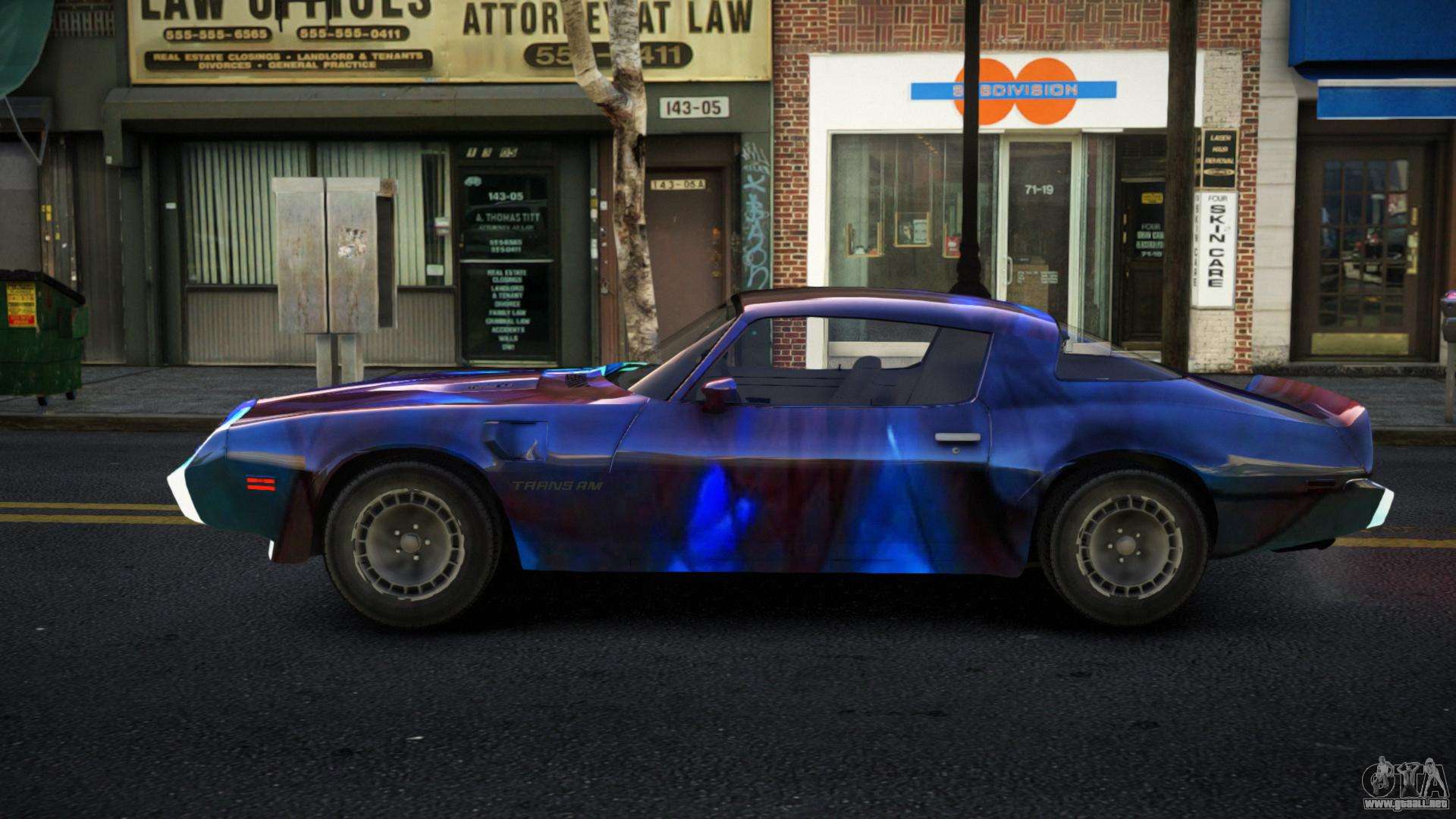 El mod Pontiac Trans AM Exabin S11 para GTA 4 se puede descargar a continuación en los enlaces. La modificación se instala automáticamente por defecto para reemplazar el Feltzer, y con la ayuda de nuestro instalador puedes sustituirlo por cualquier vehículo estándar de juego.