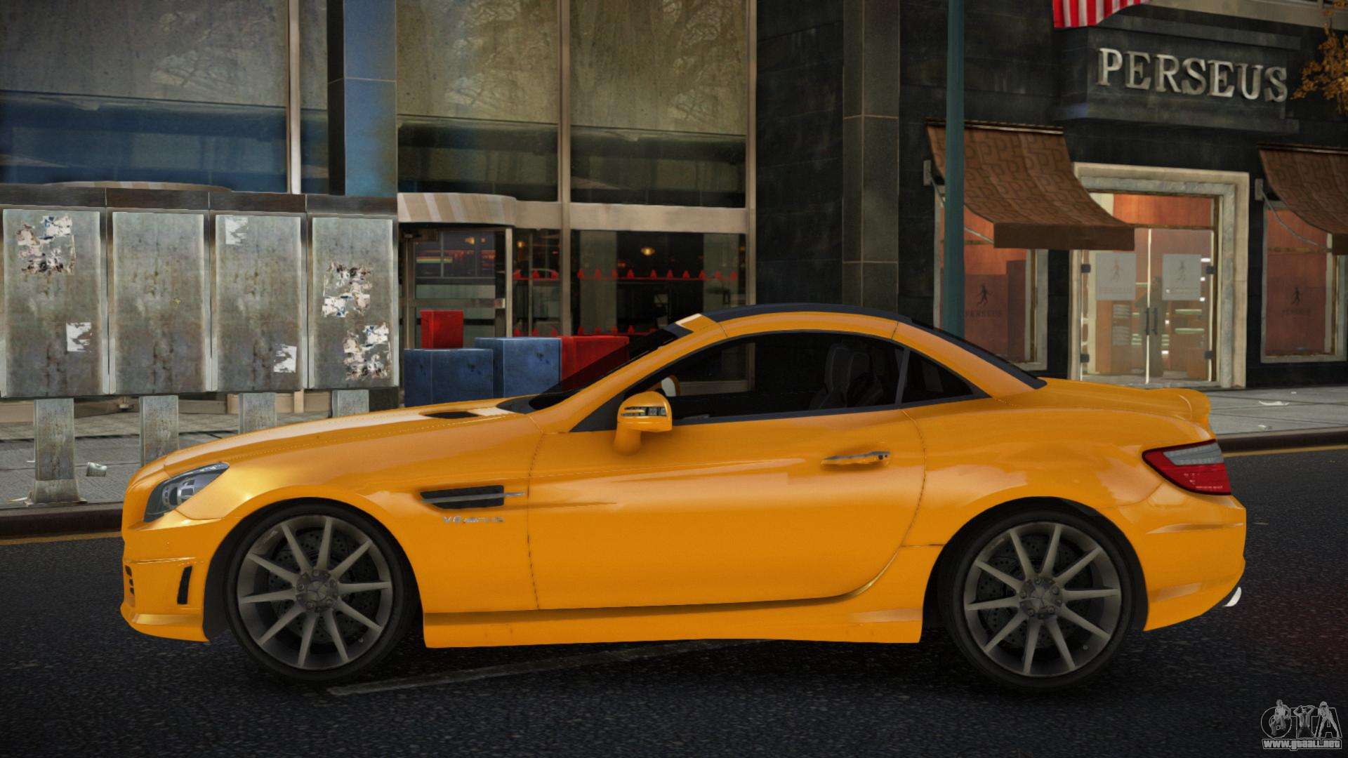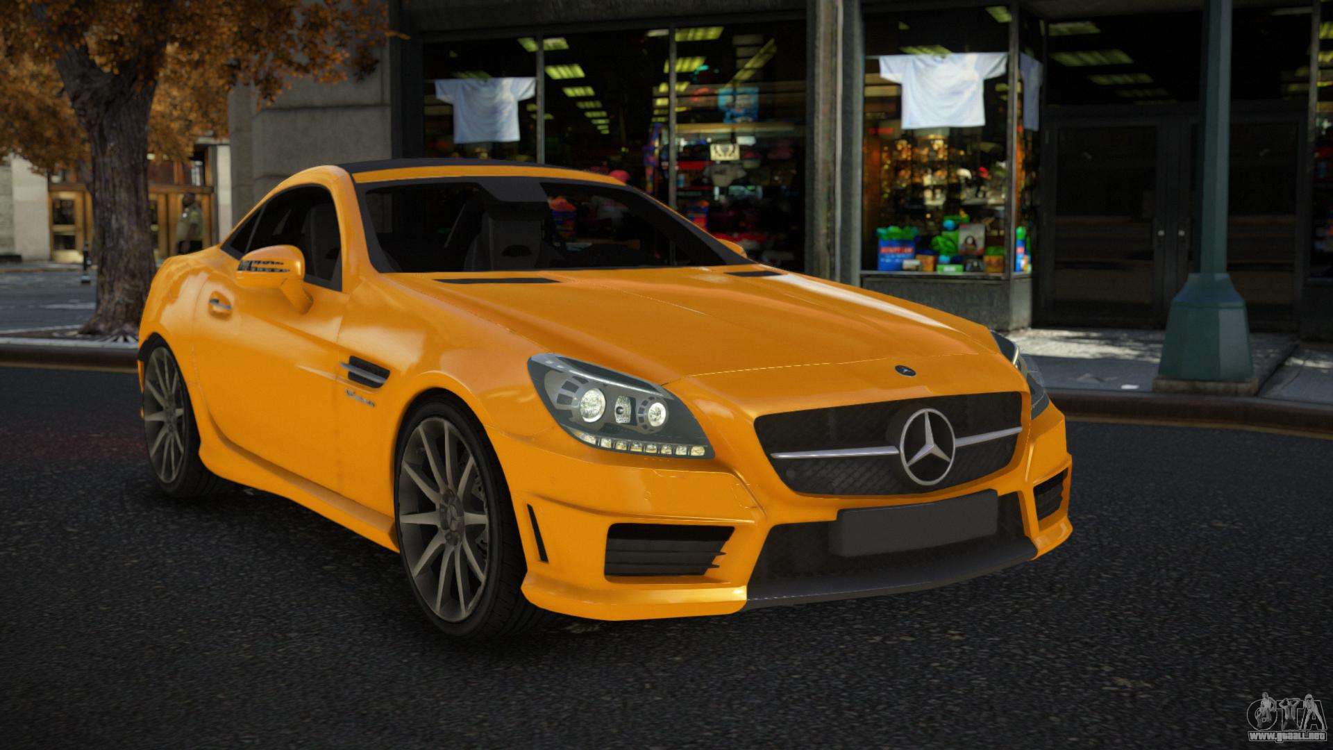 Puedes apreciar todo el encanto del coche descargando el mod Mercedes-Benz SLK55 AMG Taowu para GTA 4 haciendo clic en los enlaces de abajo. El mod se instala automáticamente en dos clics, por defecto reemplaza a Feltzer, o elige cualquier otro vehículo del juego que quieras transformar.