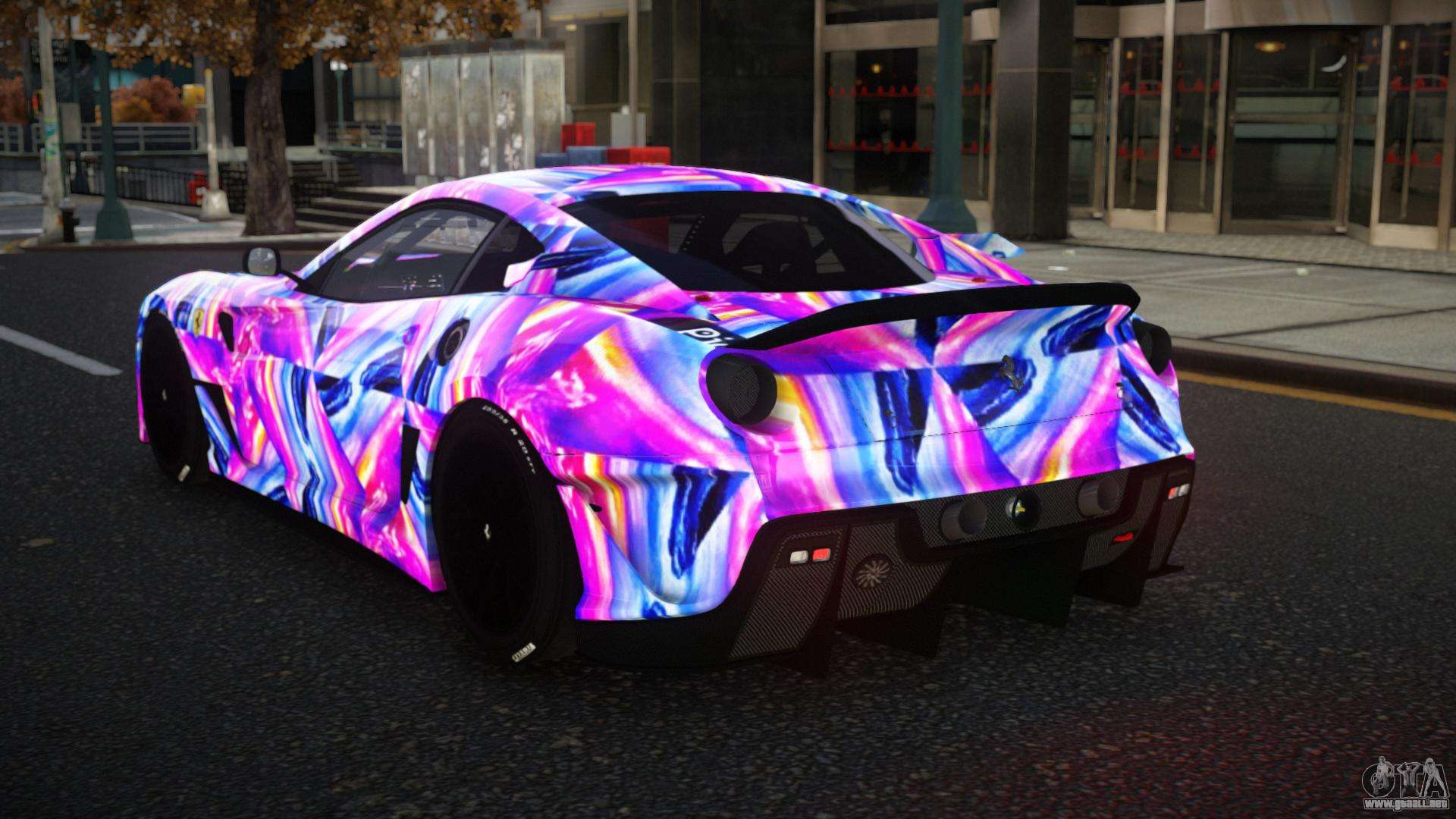 Puedes apreciar todo el encanto del coche descargando el mod Ferrari 599XX Hunsy S2 para GTA 4 haciendo clic en los enlaces de abajo. El mod se instala automáticamente con dos clics, por defecto reemplaza a la Banshee o elige cualquier otro vehículo del juego que quieras transformar.