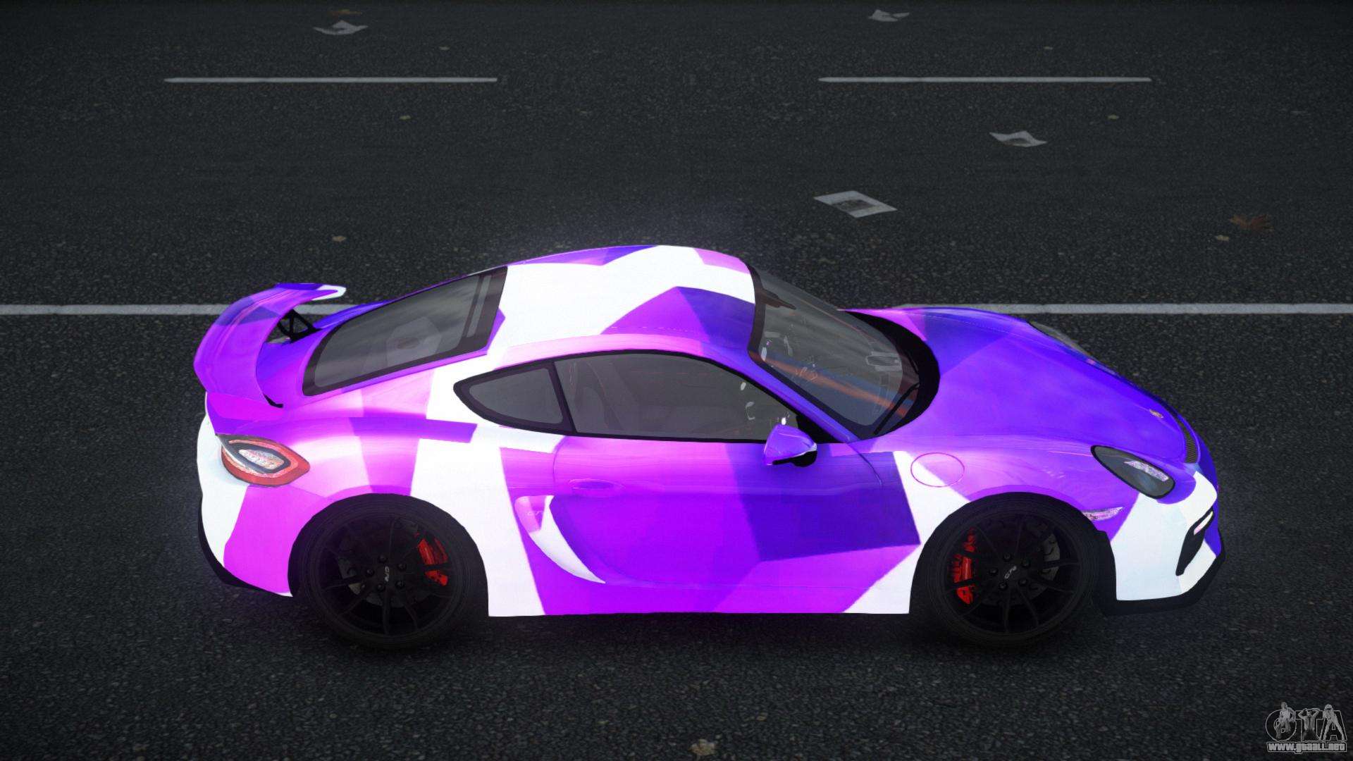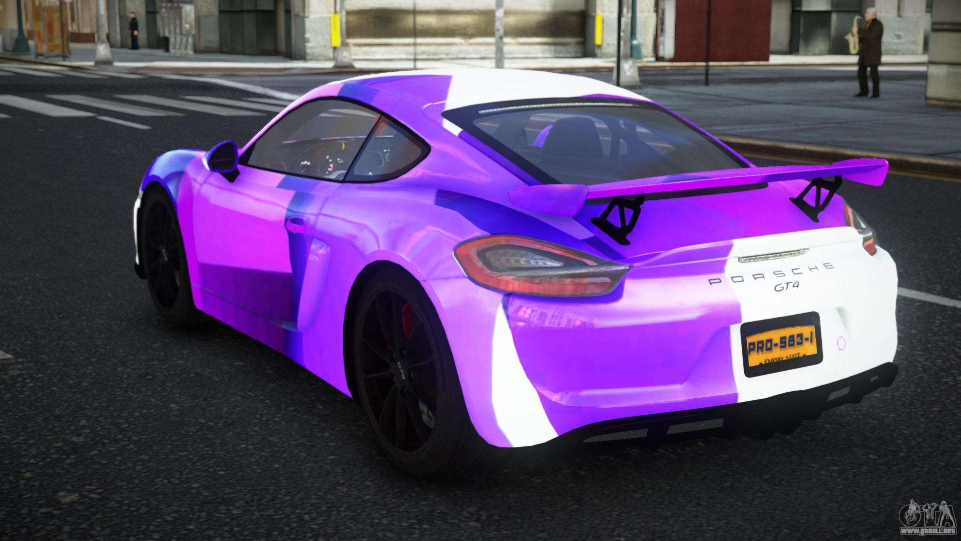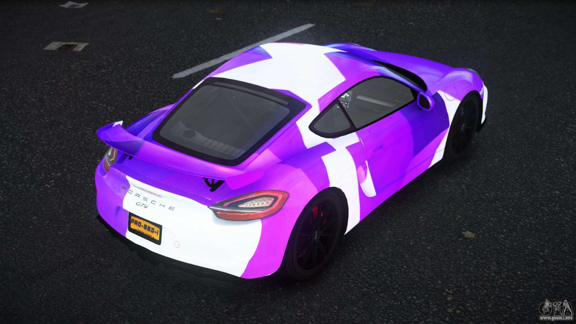 El mod Porsche Cayman GT4 Thanie S1 para GTA 4 se puede descargar a continuación en los enlaces. La modificación se instala automáticamente por defecto para reemplazar el Feltzer, y con la ayuda de nuestro instalador puedes sustituirlo por cualquier vehículo estándar de juego.