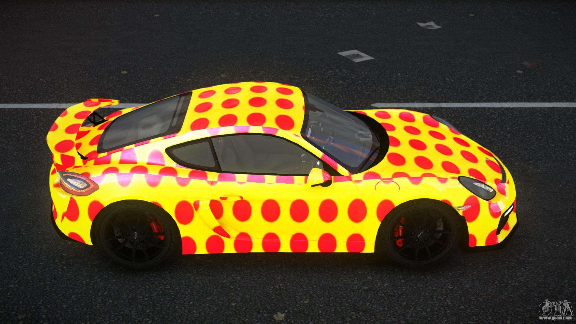 Para descargar gratis el mod Porsche Cayman GT4 Thanie S7 para GTA 4, solo tienes que hacer clic en los enlaces al final de la página. Nuestro instalador automático te ayudará a instalar el mod de reemplazo Feltzer en dos clics, o puedes elegir cualquier otro vehículo estándar del juego.