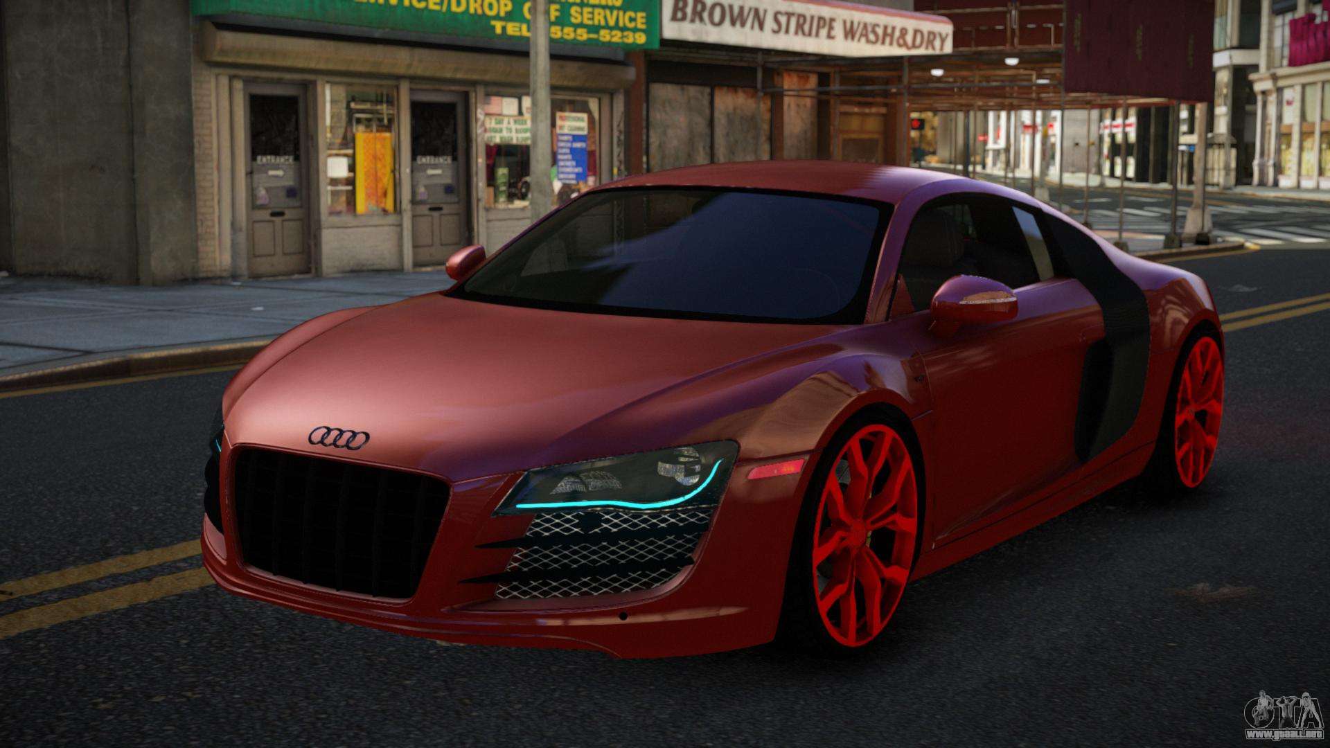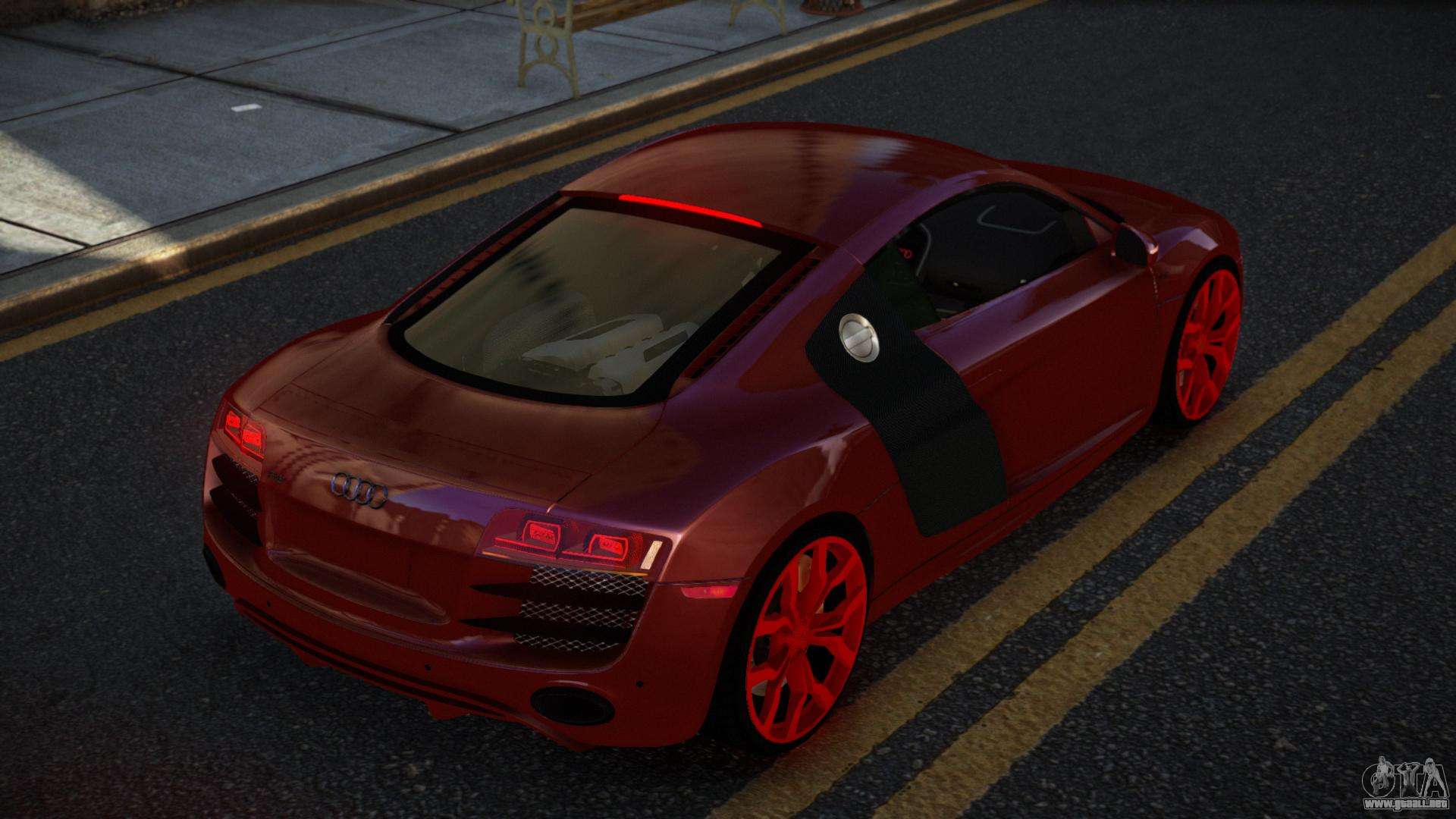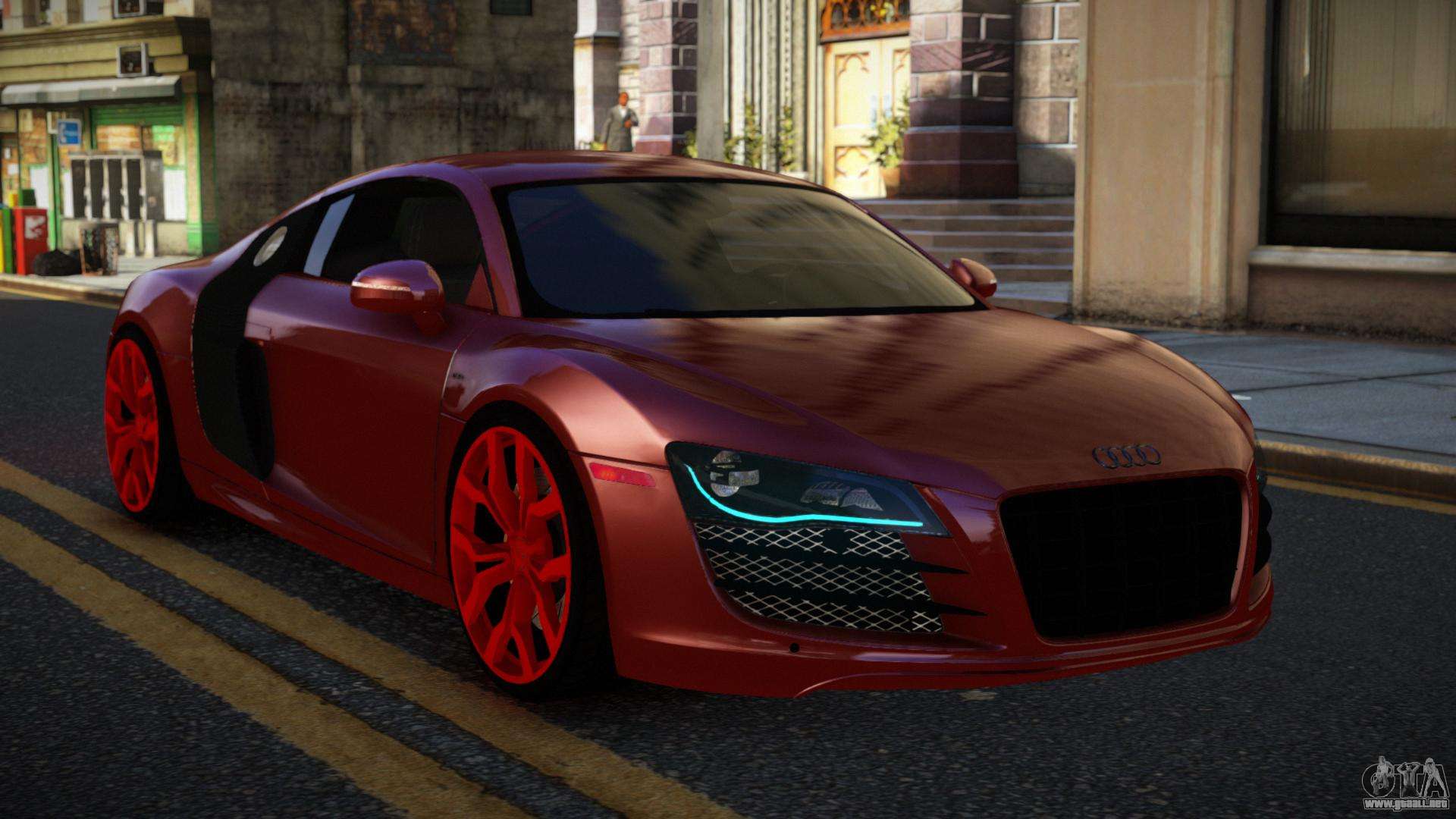No te niegues el placer, sigue los enlaces de abajo y descarga el mod Audi R8 Zowelawim para GTA 4. Instalación automática en dos clics, por defecto reemplazarán a Comet. Y además, gracias a nuestro instalador, puedes elegir qué coche estándar de juego quieres mejorar.