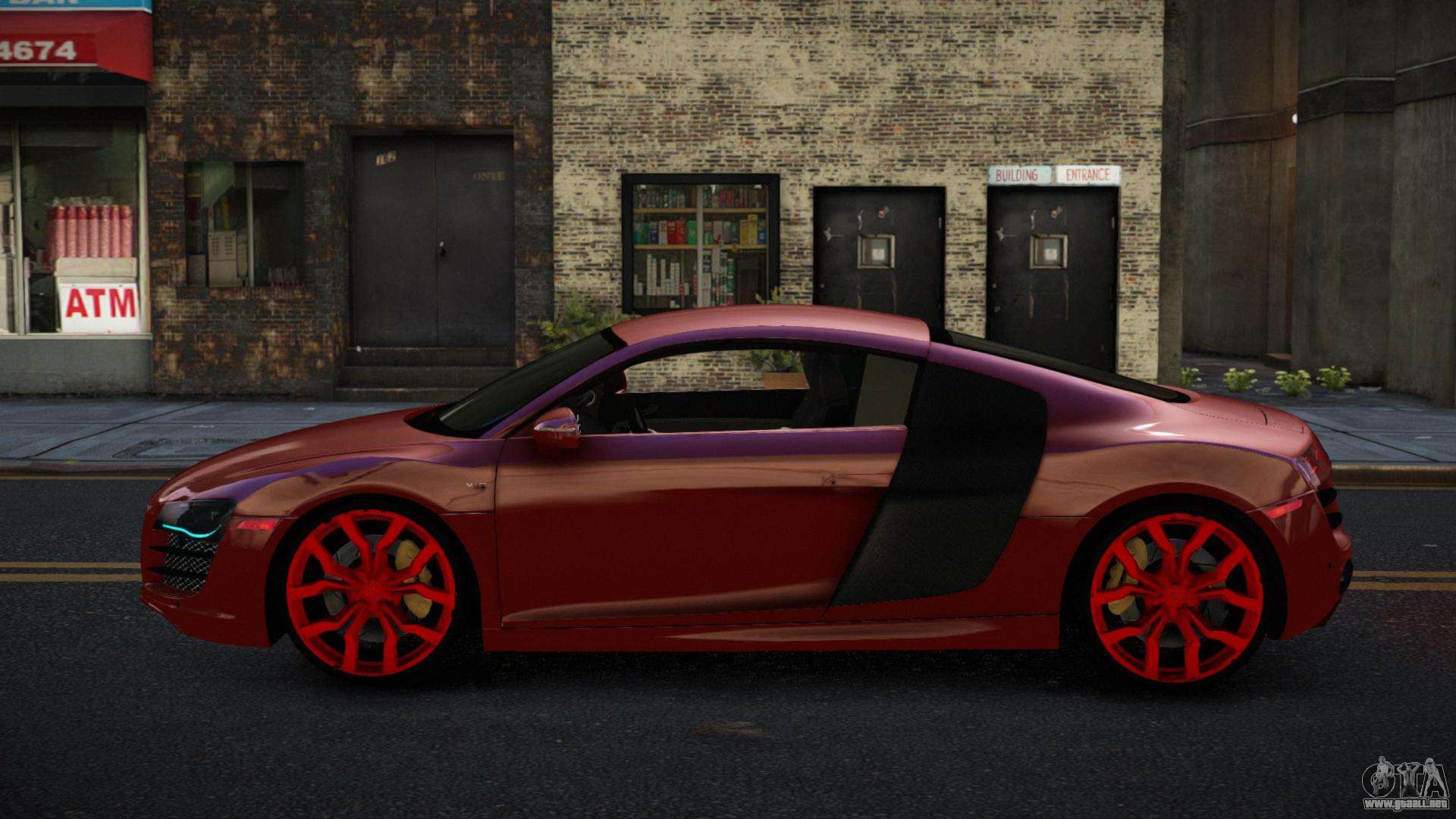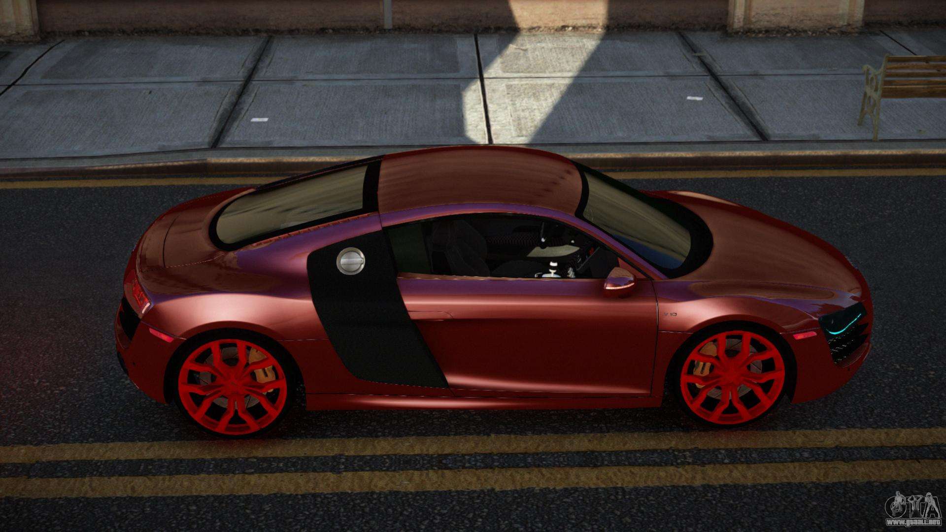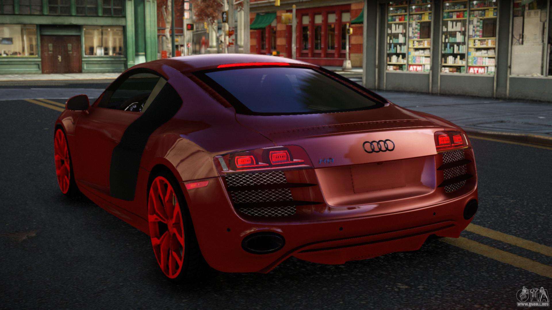 No te niegues el placer, sigue los enlaces de abajo y descarga el mod Audi R8 Zowelawim para GTA 4. Instalación automática en dos clics, por defecto reemplazarán a Comet. Y además, gracias a nuestro instalador, puedes elegir qué coche estándar de juego quieres mejorar.