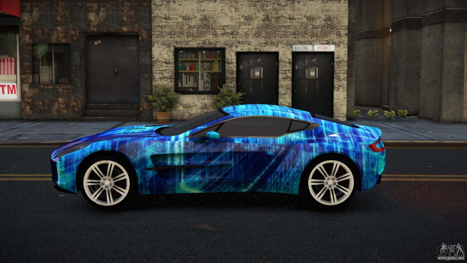 Puedes descargar gratis el mod de coche Aston Martin One-77 Maier S5 para GTA 4 haciendo clic en el enlace de abajo. Instalación automática, por defecto para reemplazar la Banshee, o con la ayuda del instalador puedes elegir cualquier otro coche estándar del juego.