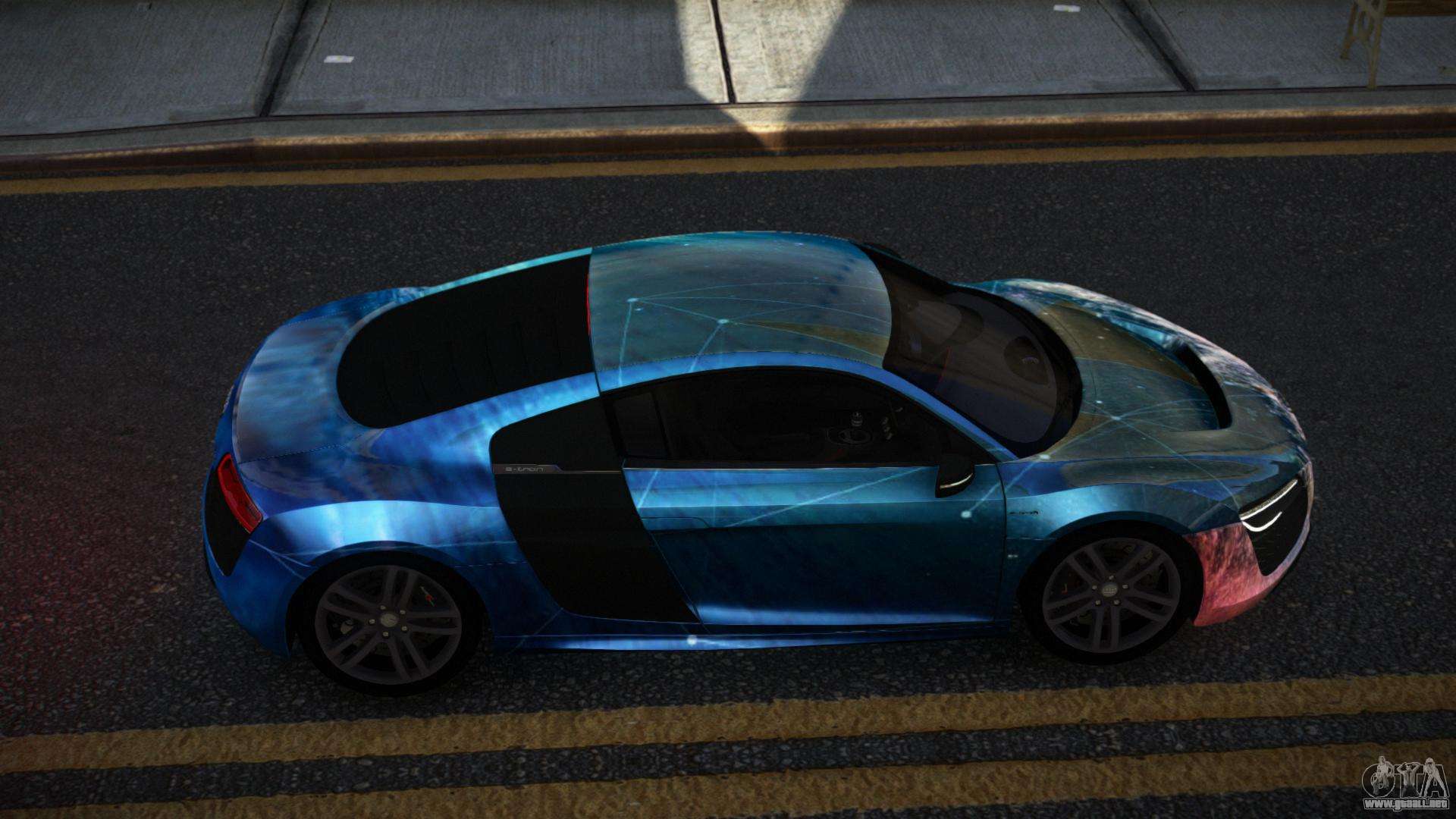 Puedes apreciar todo el encanto del coche descargando el mod Audi R8 Sonth S10 para GTA 4 haciendo clic en los enlaces de abajo. El mod se instala automáticamente en dos clics, por defecto reemplaza a Feltzer, o elige cualquier otro vehículo del juego que quieras transformar.