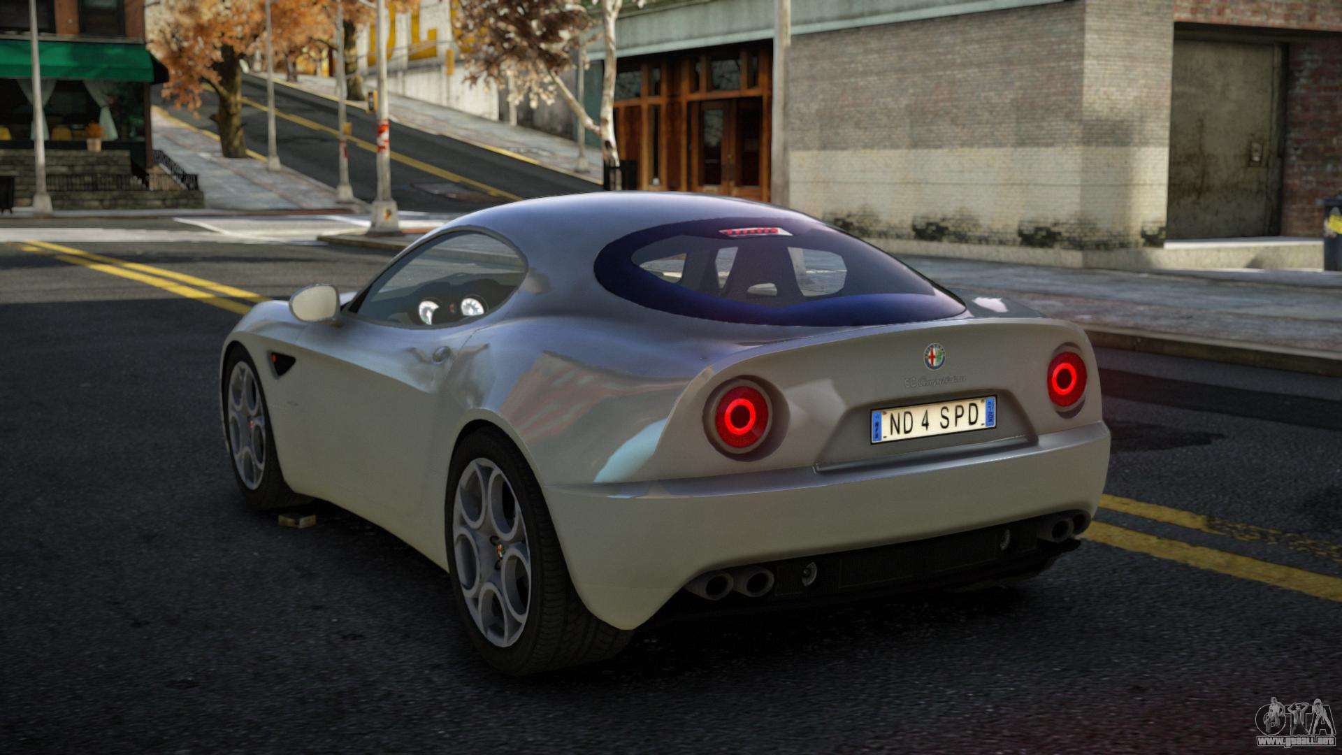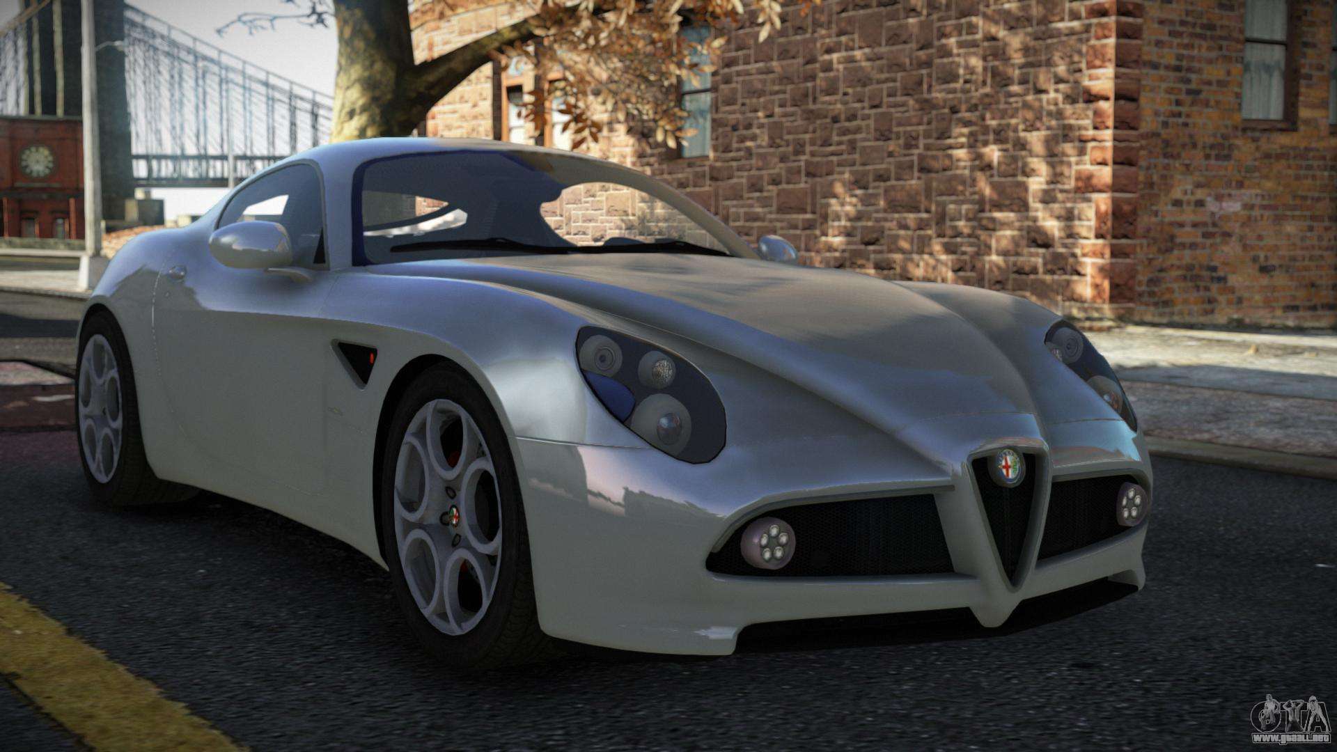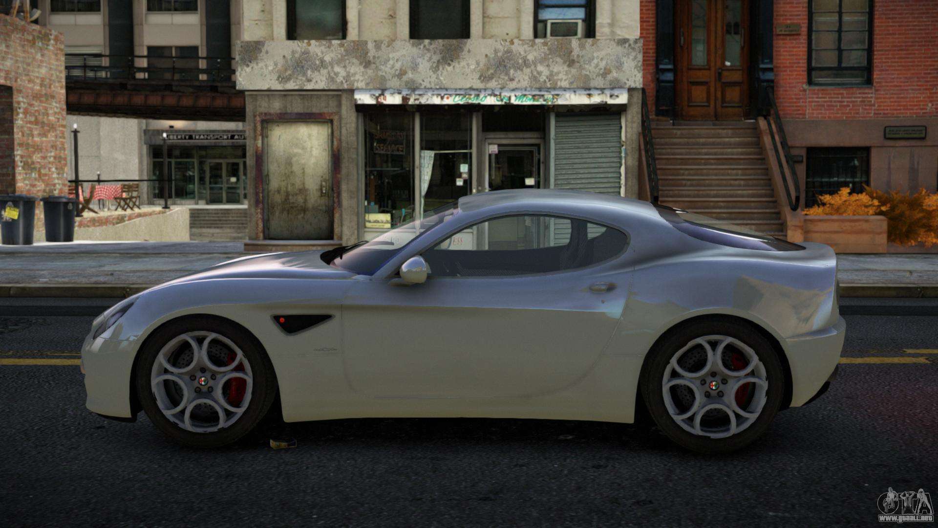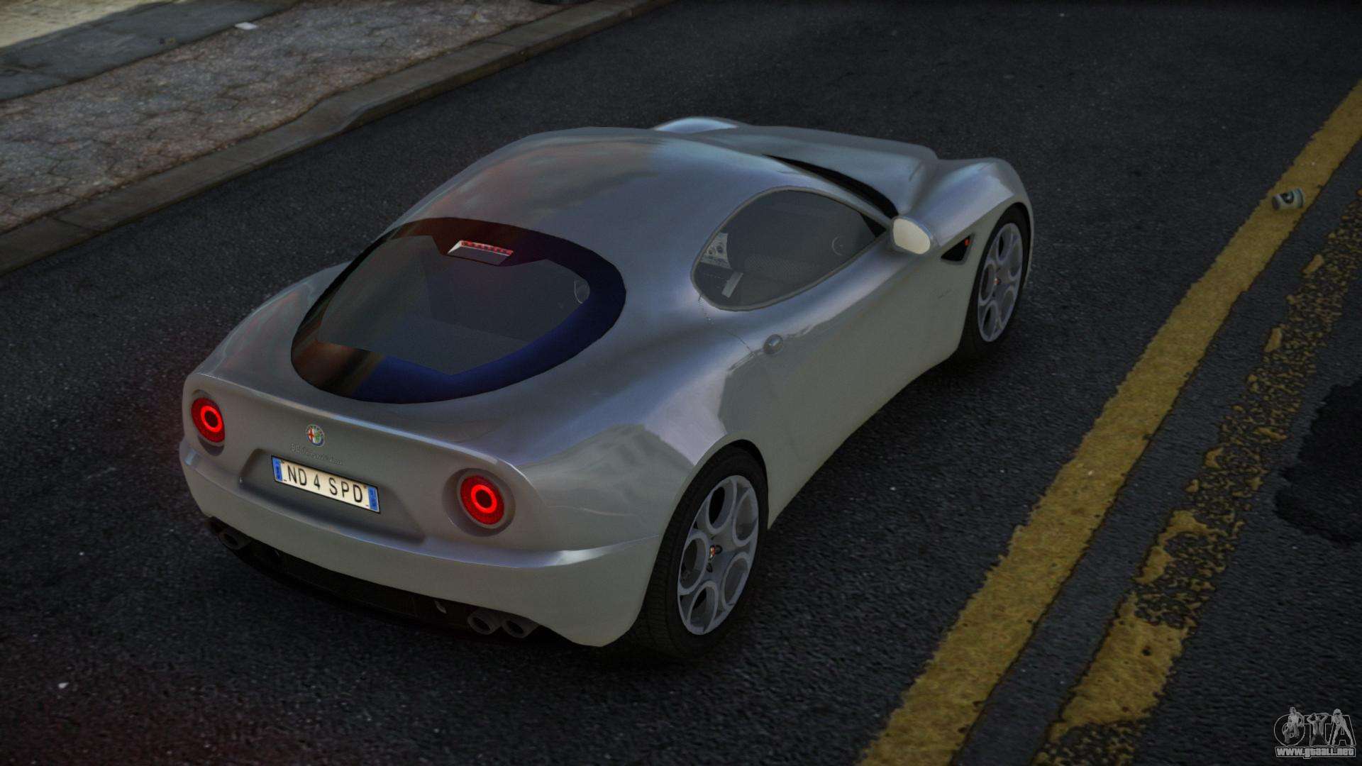 ¡Esto es lo que necesitas! Sigue los enlaces de abajo para descargar gratis el mod Alfa Romeo 8C Egiz para GTA 4. La configuración por defecto es reemplazar el Super GT, o con la ayuda del mismo instalador puedes sustituirlo por cualquier vehículo estándar.