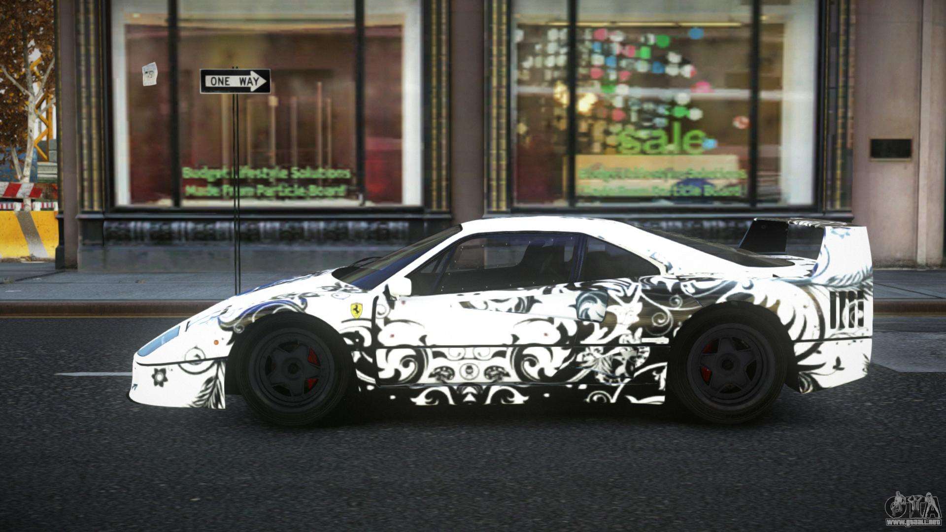 ¡Esto es lo que necesitas! Sigue los enlaces de abajo para descargar gratis el mod Ferrari F40 Stinay S6 para GTA 4. La configuración por defecto es reemplazar Feltzer, o con la ayuda del mismo instalador, puedes sustituirlo por cualquier transporte estándar.