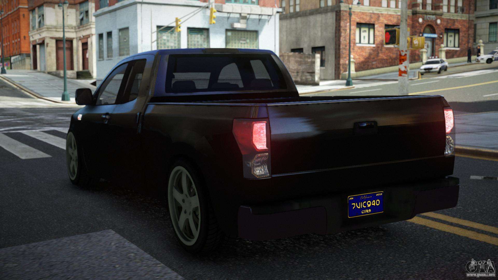 Para descargar gratis el mod Toyota Tundra Xeqje para GTA 4, solo tienes que hacer clic en los enlaces al final de la página. Nuestro instalador automático te ayudará a instalar un mod para reemplazar el Cavalcade FXT en dos clics, o puedes elegir cualquier otro vehículo estándar del juego.