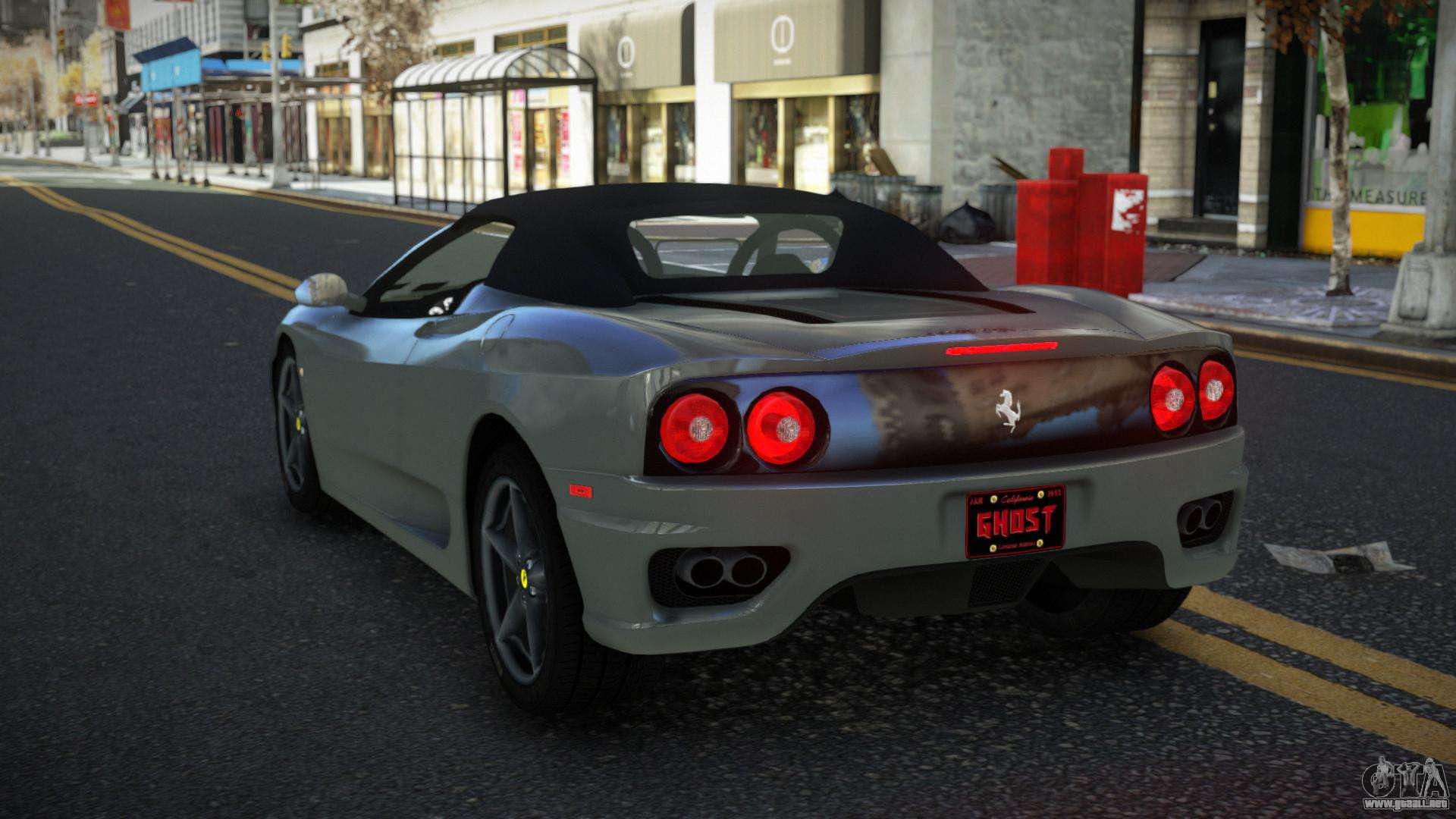 Para descargar gratis el mod Ferrari 360 Gaqkuroci para GTA 4, sigue los enlaces de abajo. El instalador automático reemplaza a Turismo por defecto, pero puedes elegir absolutamente cualquier vehículo estándar del juego que quieras reemplazar por un modelo nuevo.