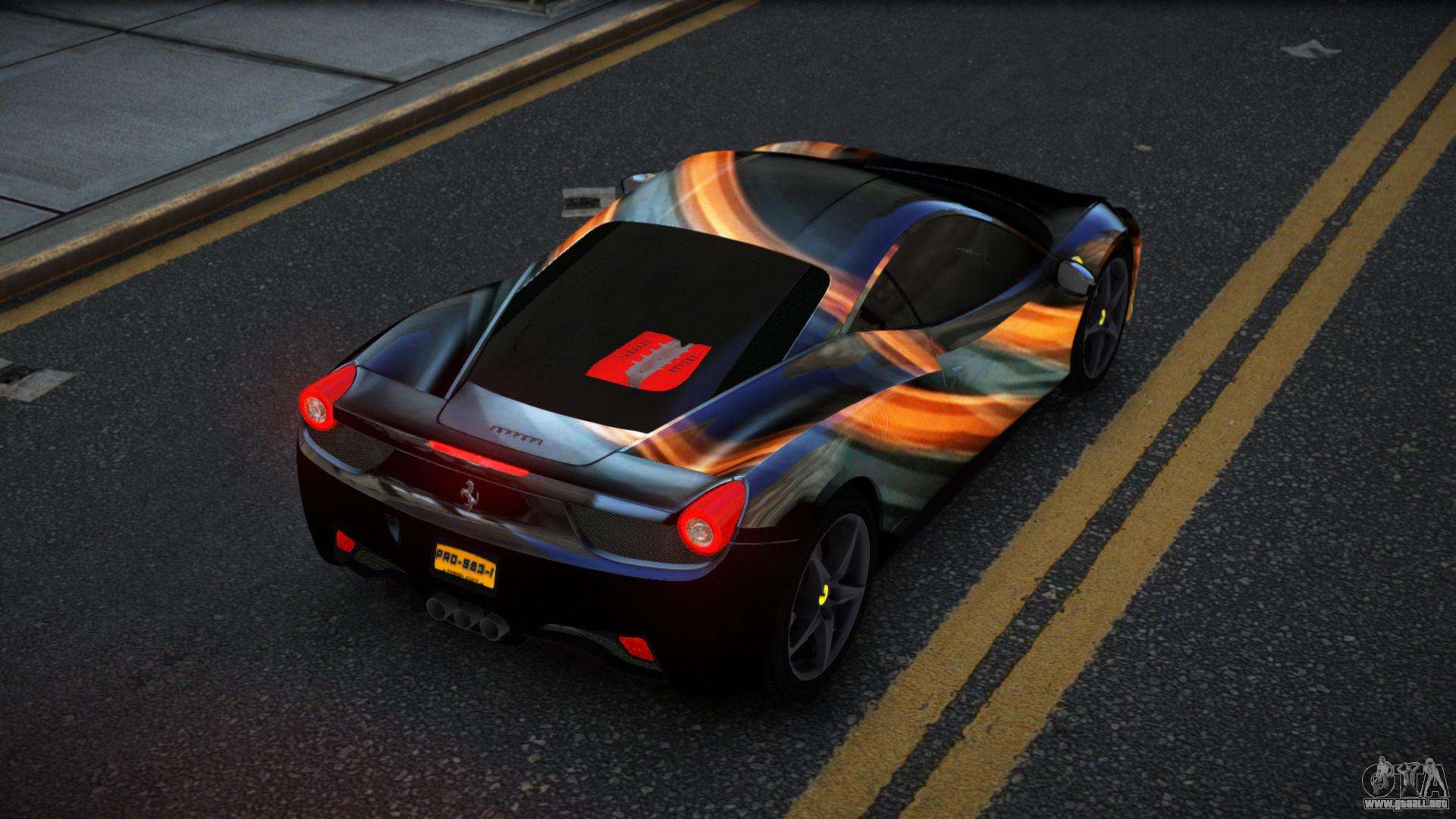 Puedes descargar el mod Ferrari 458 Gably S4 para GTA 4 desde los enlaces de abajo. Por defecto, el mod se instala en dos clics para reemplazar a Feltzer. Gracias a nuestro instalador con instalación automática, puedes reemplazar cualquier otro vehículo estándar del juego.