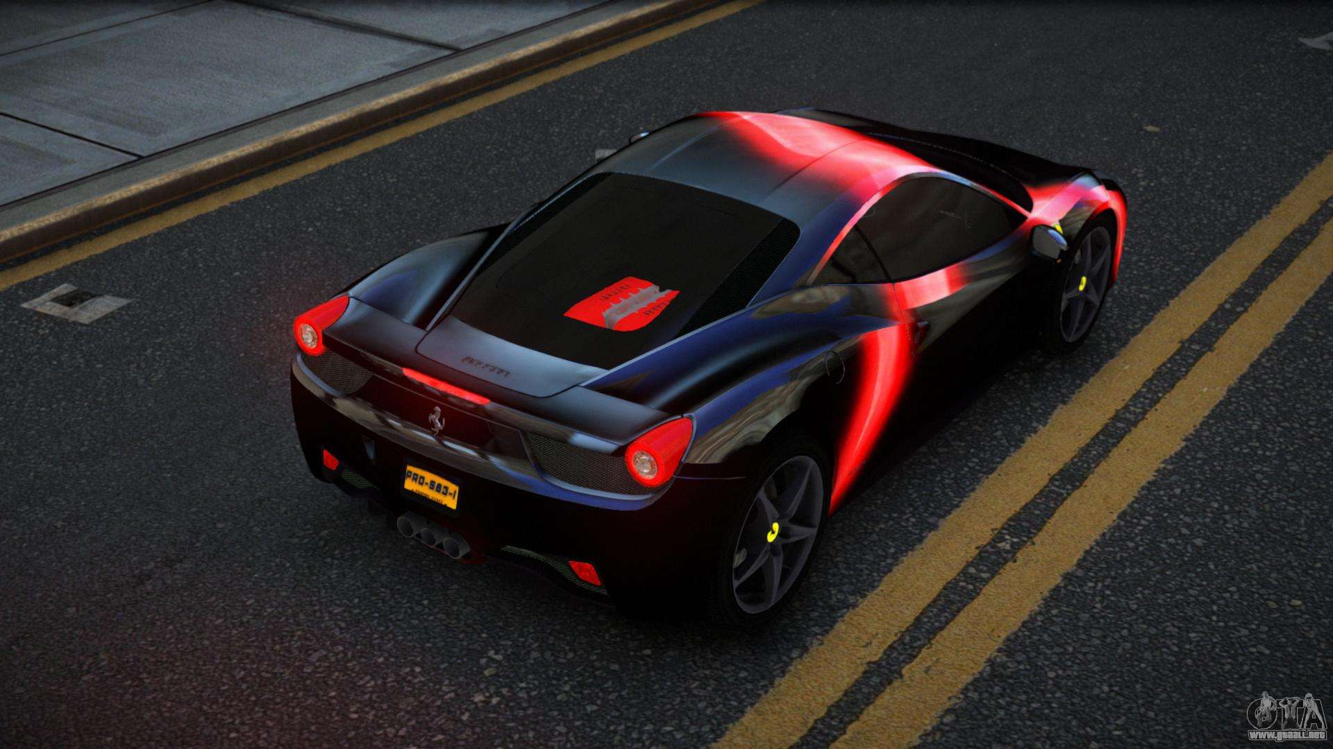 No te niegues el placer, sigue los enlaces de abajo y descarga el mod Ferrari 458 Gably S5 para GTA 4. La instalación automática en dos clics, por defecto, reemplazará a Feltzer. Y además, gracias a nuestro instalador, puedes elegir qué coche estándar de juego quieres mejorar.