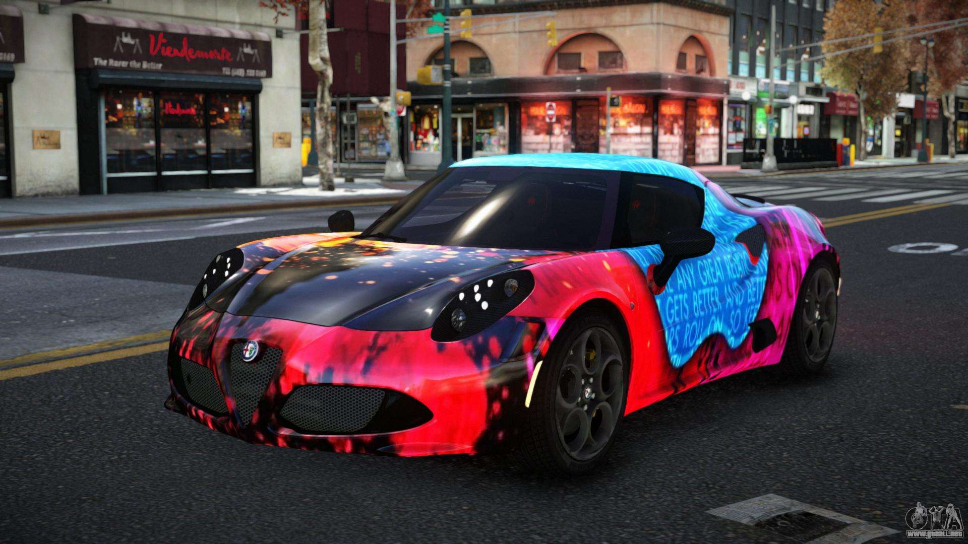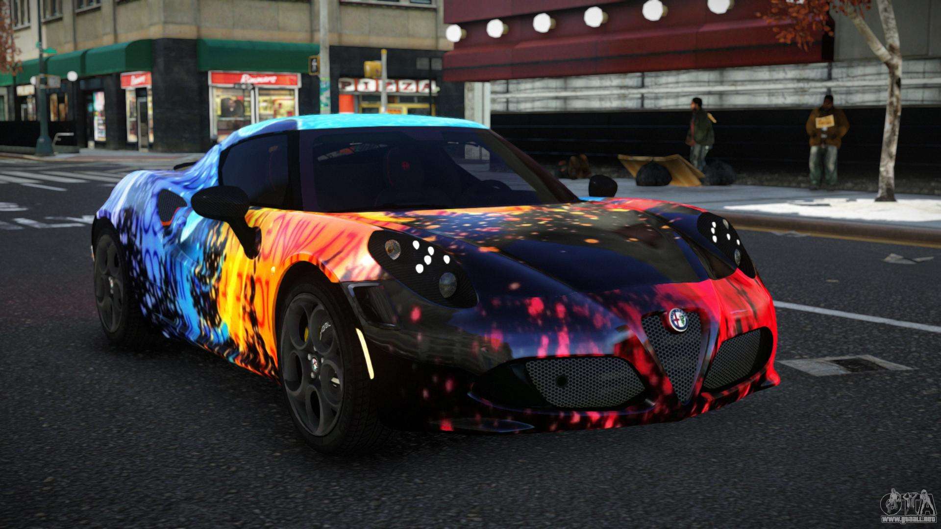 Para descargar gratis el mod Alfa Romeo 4C Lanra S1 para GTA 4, sigue los enlaces a continuación. El instalador automático reemplaza al Banshee por defecto, pero puedes elegir absolutamente cualquier vehículo estándar del juego que quieras reemplazar por un modelo nuevo.