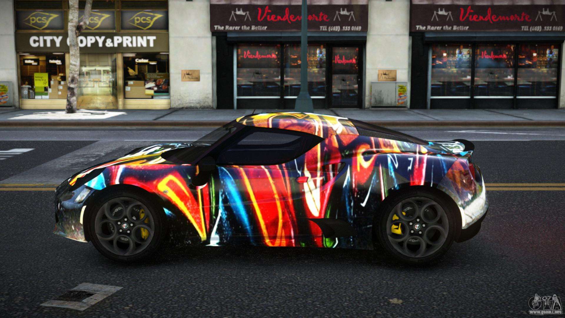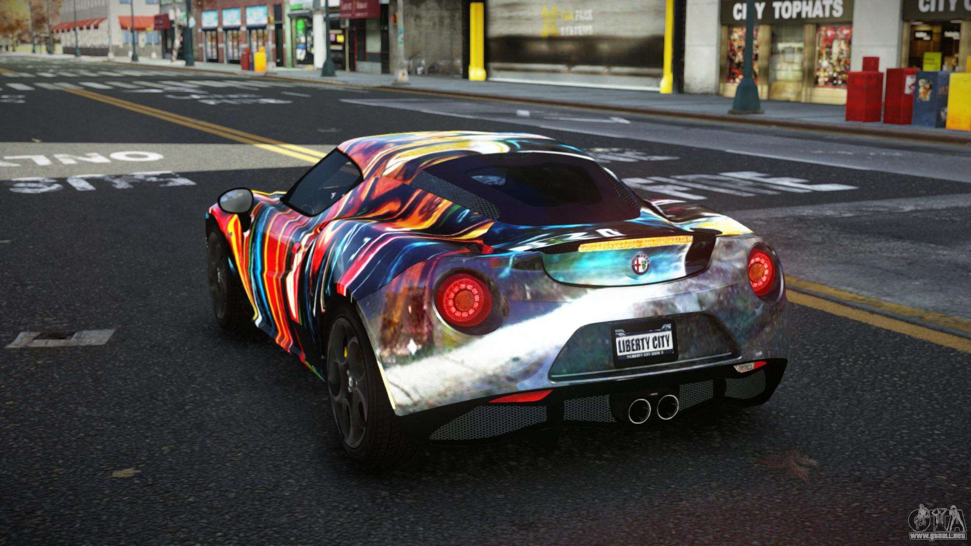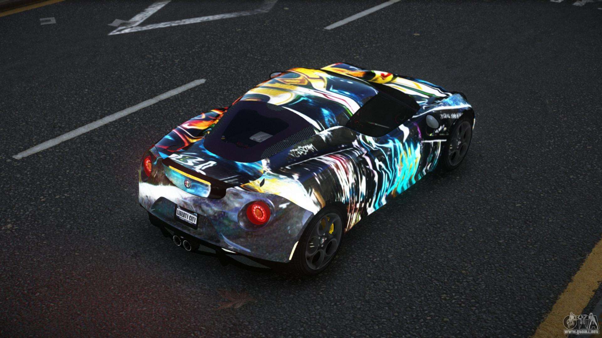 La modificación Alfa Romeo 4C Lanra S13 para GTA 4 se puede descargar a continuación en los enlaces. La modificación se instala automáticamente por defecto para reemplazar la Banshee, y con la ayuda de nuestro instalador también puedes sustituirla por cualquier vehículo estándar del juego.