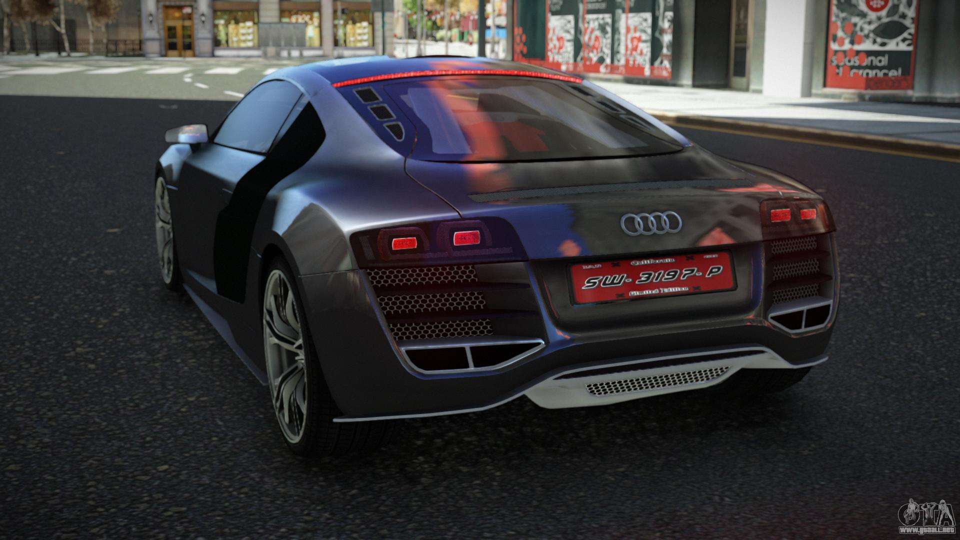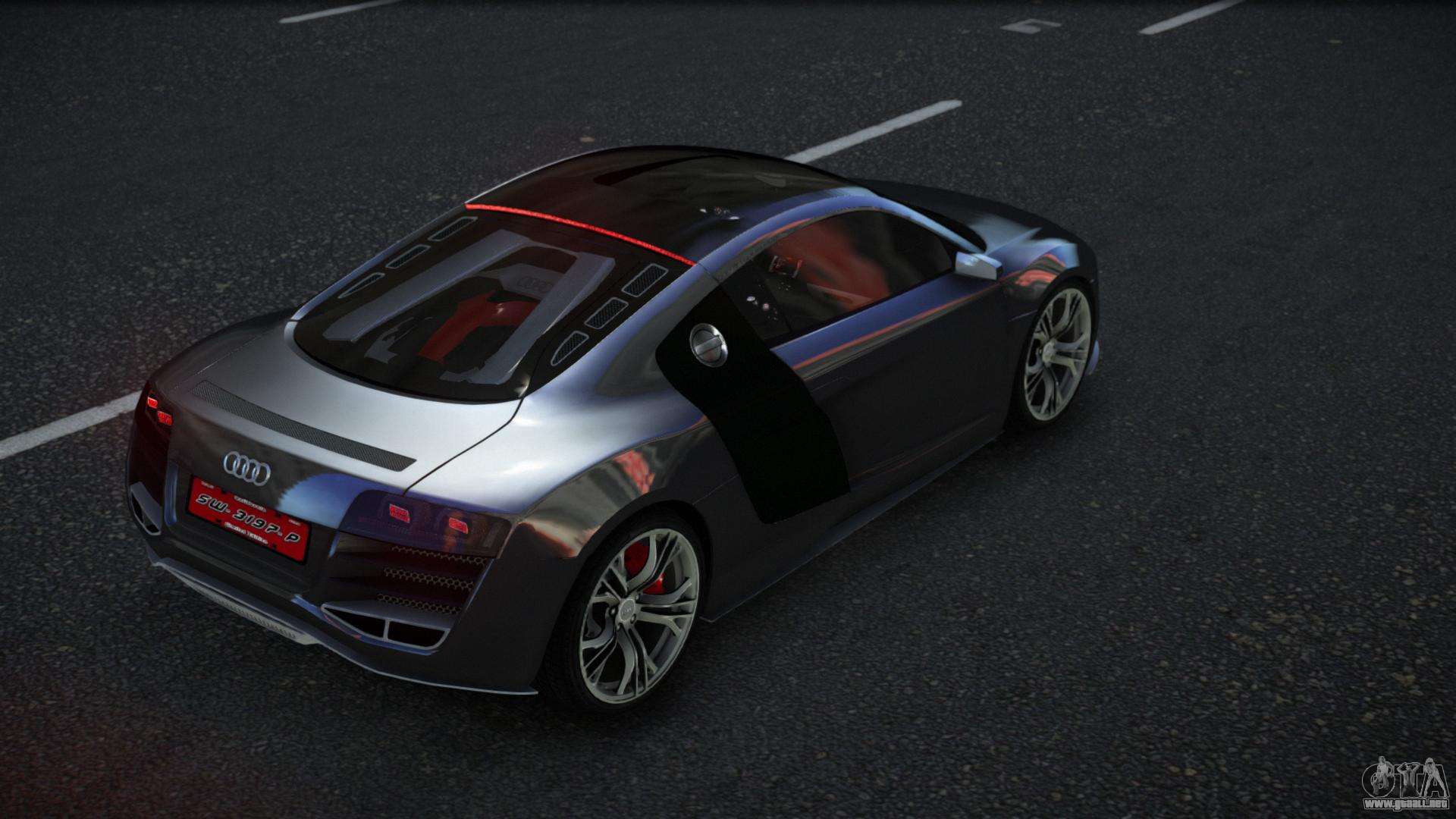 Puedes descargar gratis el mod de coche Audi R8 Yalceki para GTA 4 haciendo clic en el enlace de abajo. Instalación automática, por defecto para reemplazar a Comet, o con la ayuda del instalador puedes seleccionar cualquier otro coche estándar del juego.