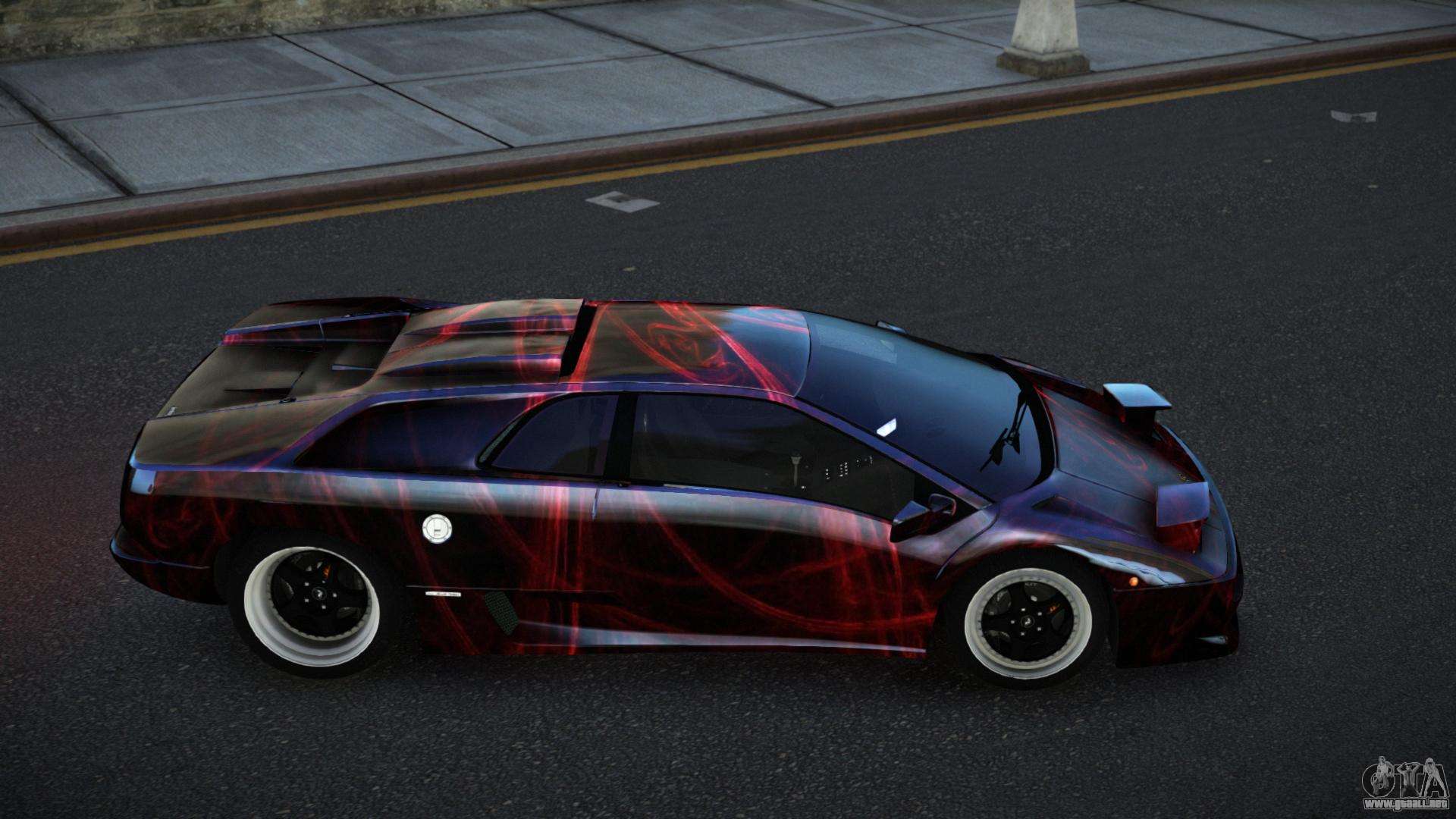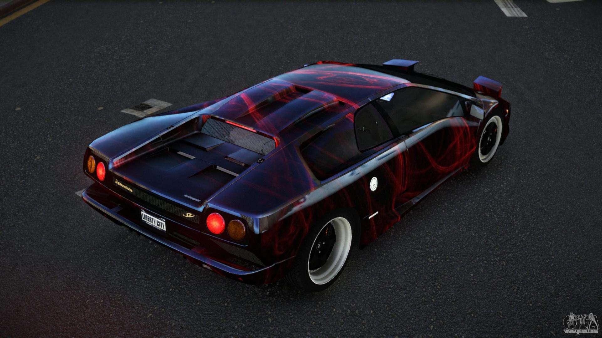 El mod Lamborghini Diablo Olasce S11 para GTA 4 se puede descargar a continuación en los enlaces. La modificación se instala automáticamente por defecto para reemplazar el Feltzer, y con la ayuda de nuestro instalador puedes sustituirlo por cualquier vehículo estándar de juego.