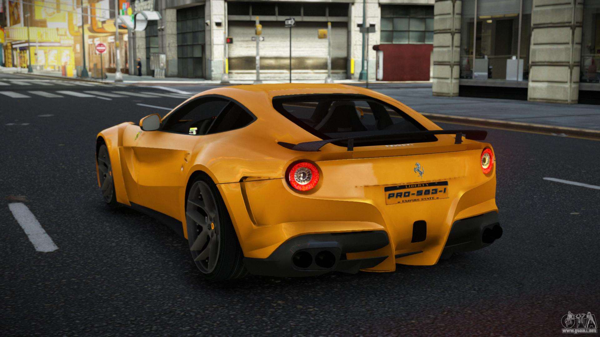 Puedes apreciar todo el encanto del coche descargando el mod Ferrari F12 Huvu para GTA 4 haciendo clic en los enlaces de abajo. El mod se instala automáticamente en dos clics, por defecto reemplaza a Super GT, o elige cualquier otro vehículo del juego que quieras transformar.