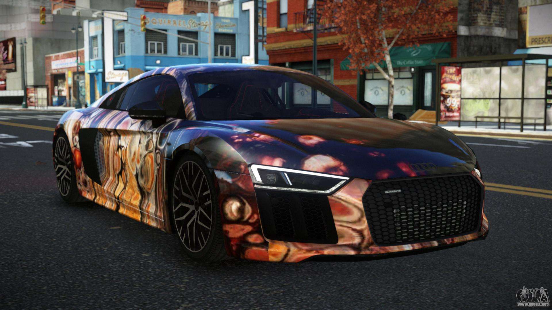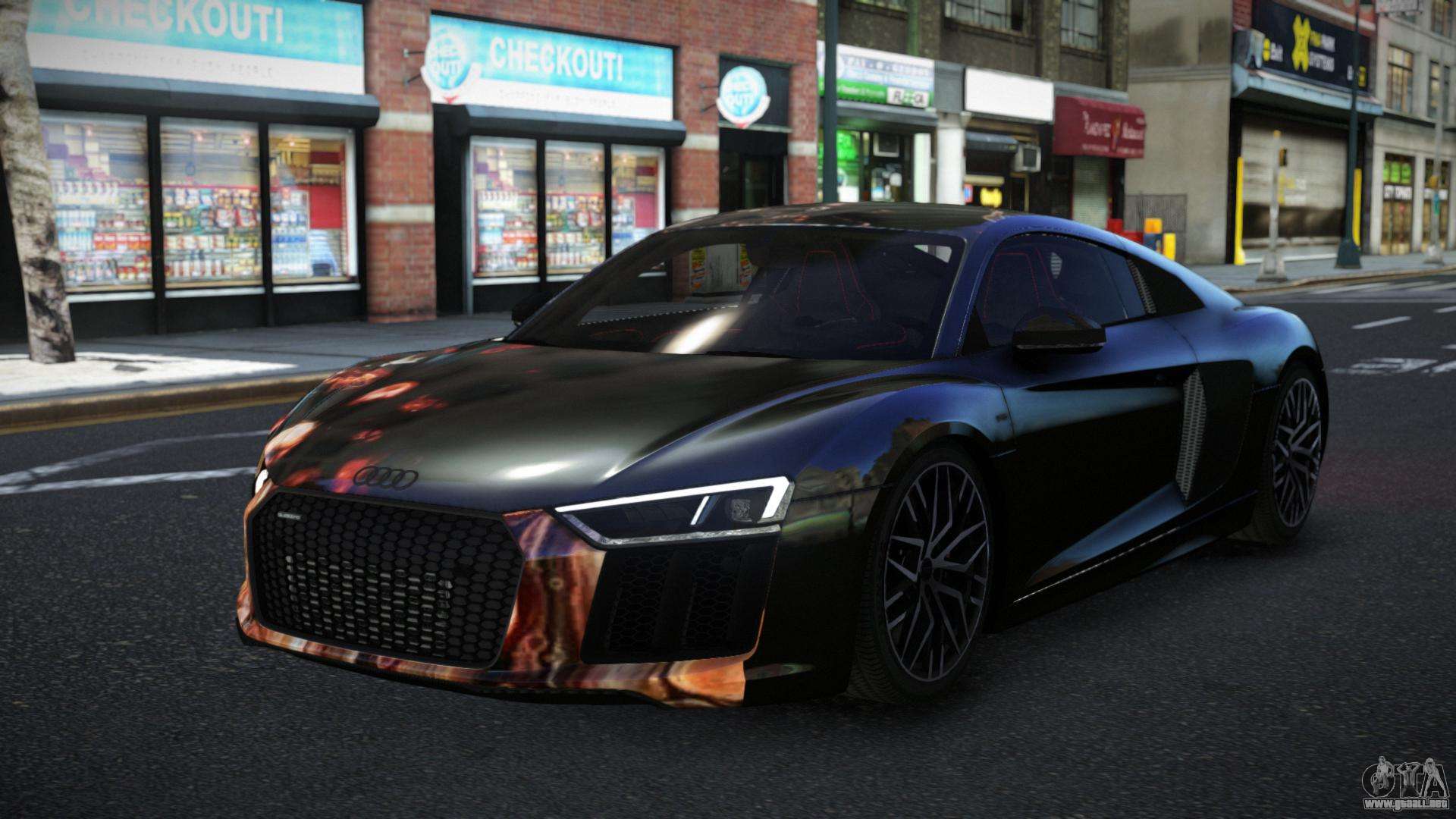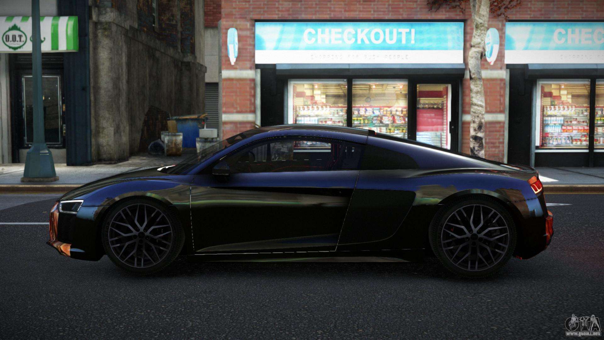¡Esto es lo que necesitas! Sigue los enlaces a continuación para descargar gratis el mod Audi R8 Lynelo S8 para GTA 4. La configuración por defecto es reemplazar la Banshee, o con la ayuda del mismo instalador puedes sustituirla por cualquier transporte estándar.