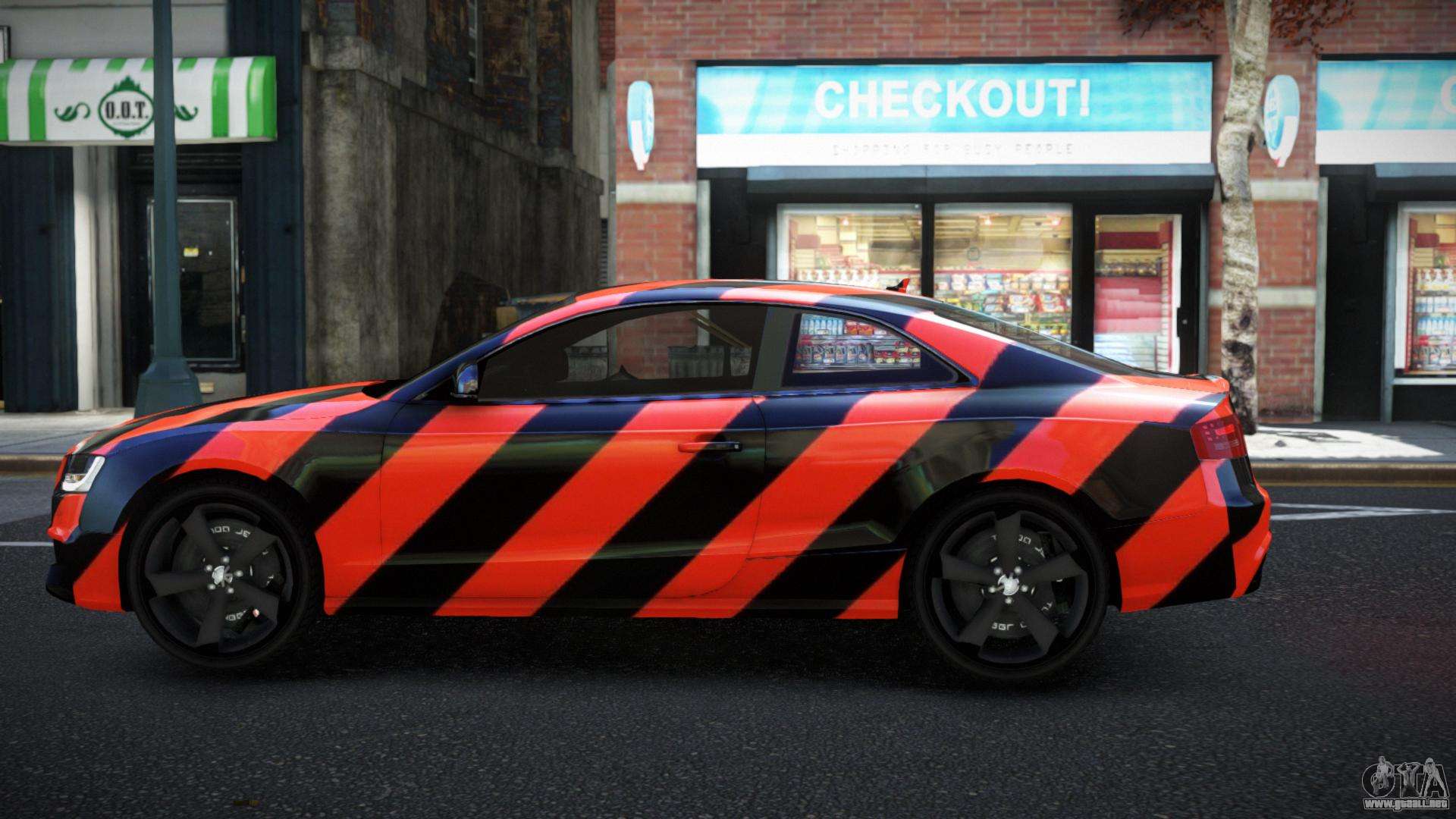 Puedes apreciar todo el encanto del coche descargando el mod Audi RS5 Leygra S10 para GTA 4 haciendo clic en los enlaces de abajo. El mod se instala automáticamente en dos clics, por defecto reemplaza a Feltzer, o elige cualquier otro vehículo del juego que quieras transformar.
