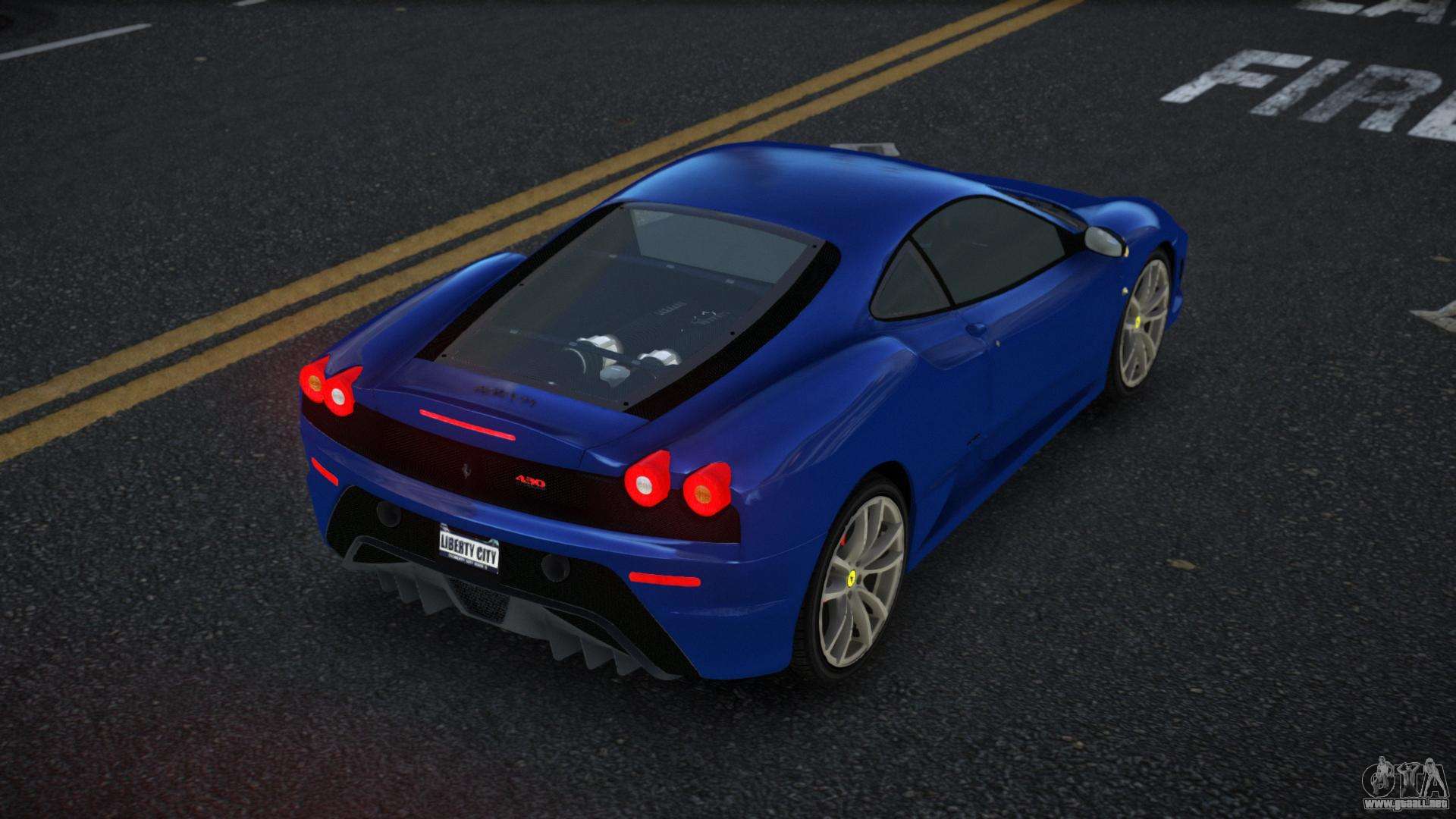 Puedes apreciar todo el encanto del coche descargando el mod Ferrari F430 Rahay para GTA 4 haciendo clic en los enlaces de abajo. El mod se instala automáticamente con dos clics, por defecto reemplaza a la Banshee o elige cualquier otro vehículo del juego que quieras transformar.