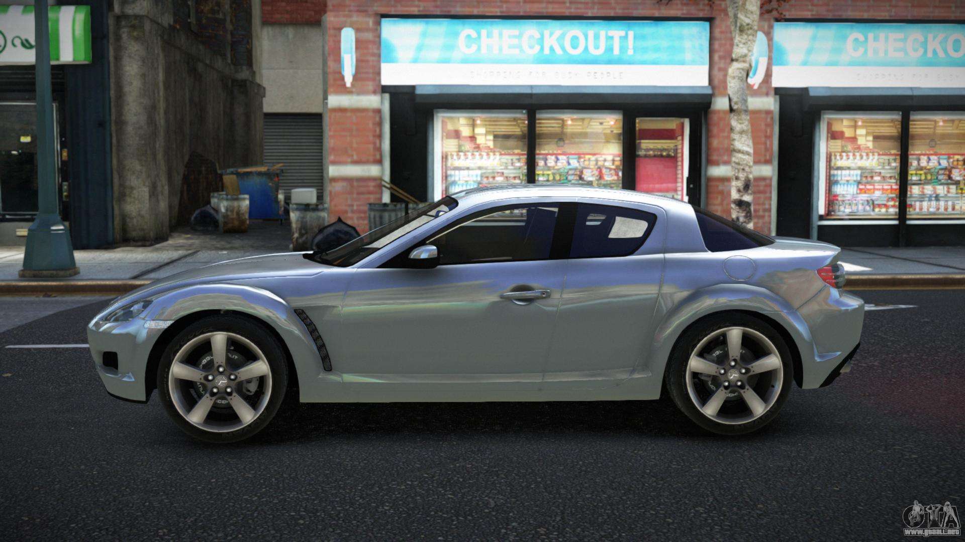El mod Mazda RX-8 Zuyzetor para GTA 4 se puede descargar a continuación en los enlaces. La modificación se instala automáticamente por defecto para reemplazar la Banshee, y con la ayuda de nuestro instalador también puedes sustituirla por cualquier vehículo estándar del juego.