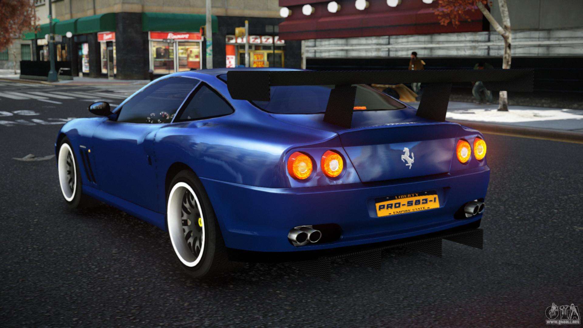 No te niegues el placer, sigue los enlaces de abajo y descarga el mod Ferrari 575 Iwob para GTA 4. La instalación automática en dos clics, por defecto, reemplazará a Feltzer. Y además, gracias a nuestro instalador, puedes elegir qué coche estándar de juego quieres mejorar.