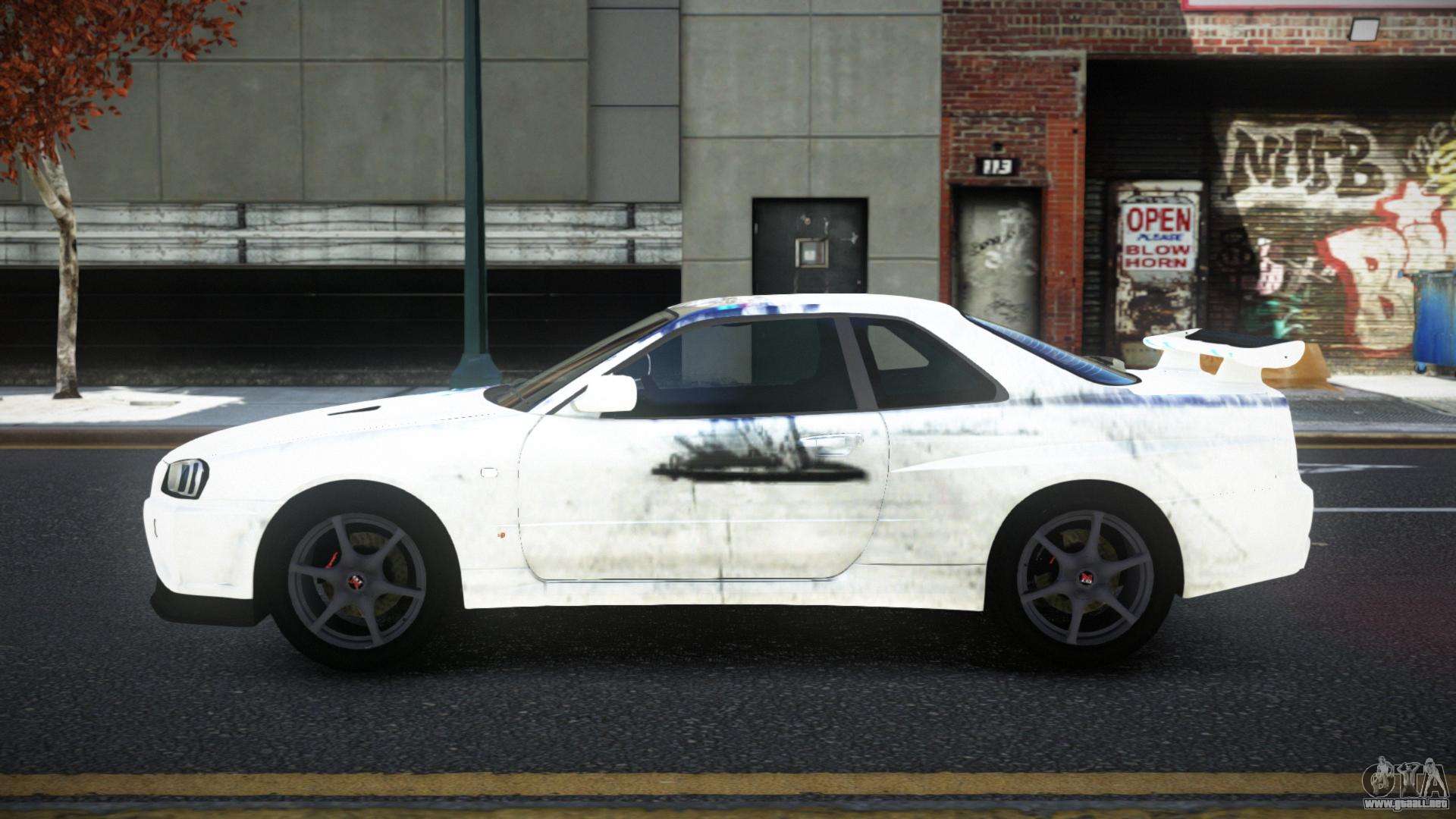 El mod Nissan Skyline R34 Conia S11 para GTA 4 se puede descargar a continuación en los enlaces. La modificación se instala automáticamente por defecto para reemplazar el Feltzer, y con la ayuda de nuestro instalador puedes sustituirlo por cualquier vehículo estándar de juego.