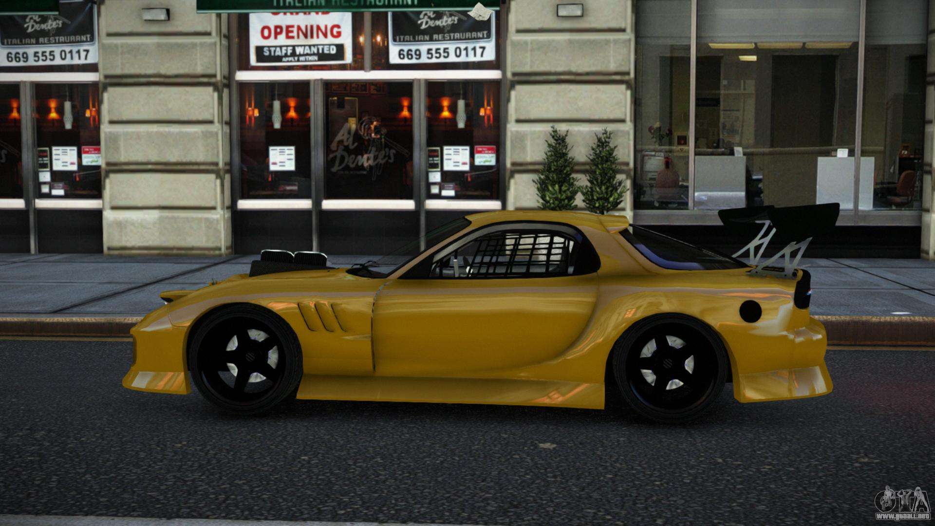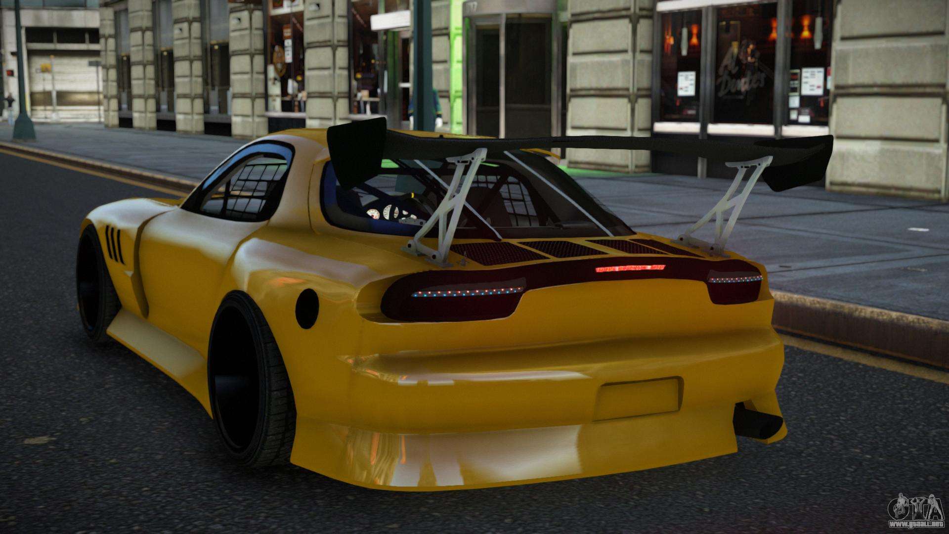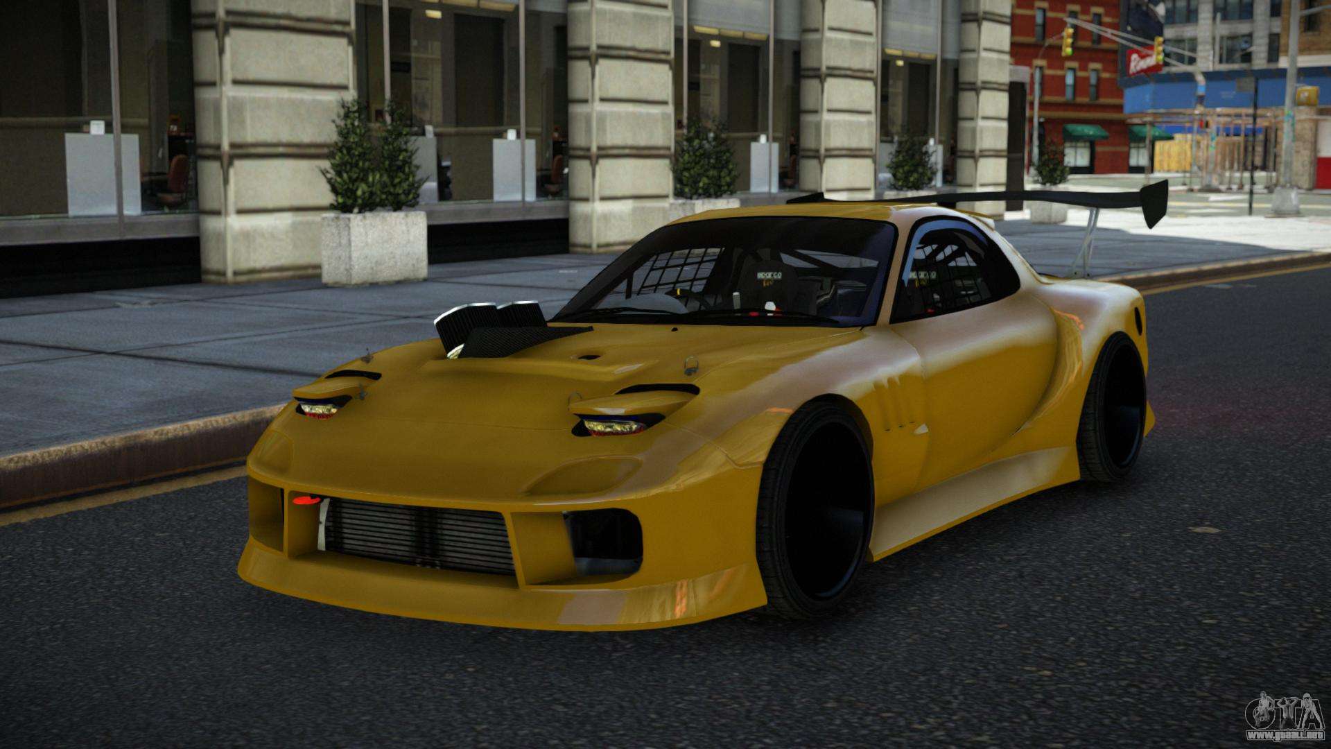 Puedes descargar gratis el mod de coche Mazda RX-7 Yoqji para GTA 4 haciendo clic en el enlace de abajo. Instalación automática, por defecto para reemplazar la Banshee, o con la ayuda del instalador puedes elegir cualquier otro coche estándar del juego.