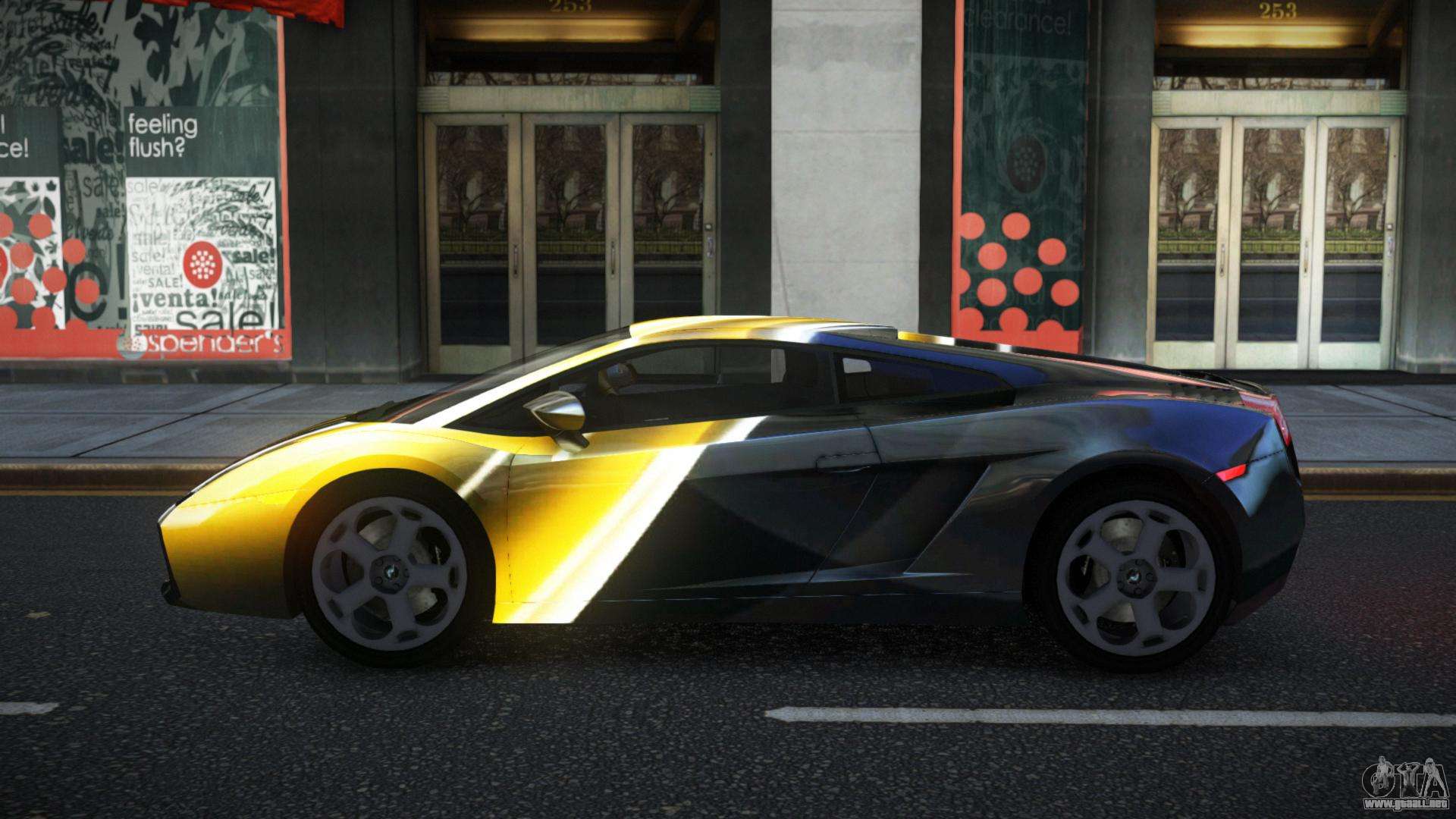 Puedes descargar gratis el mod de coche Lamborghini Gallardo Dialyn S3 para GTA 4 haciendo clic en el enlace de abajo. Instalación automática, por defecto para reemplazar a Feltzer, o con la ayuda del instalador puedes seleccionar cualquier otro coche estándar del juego.
