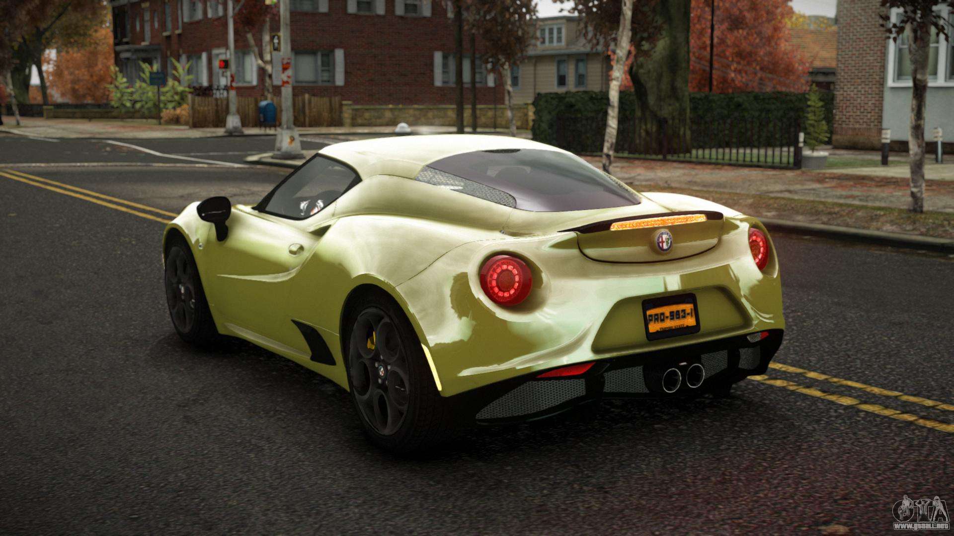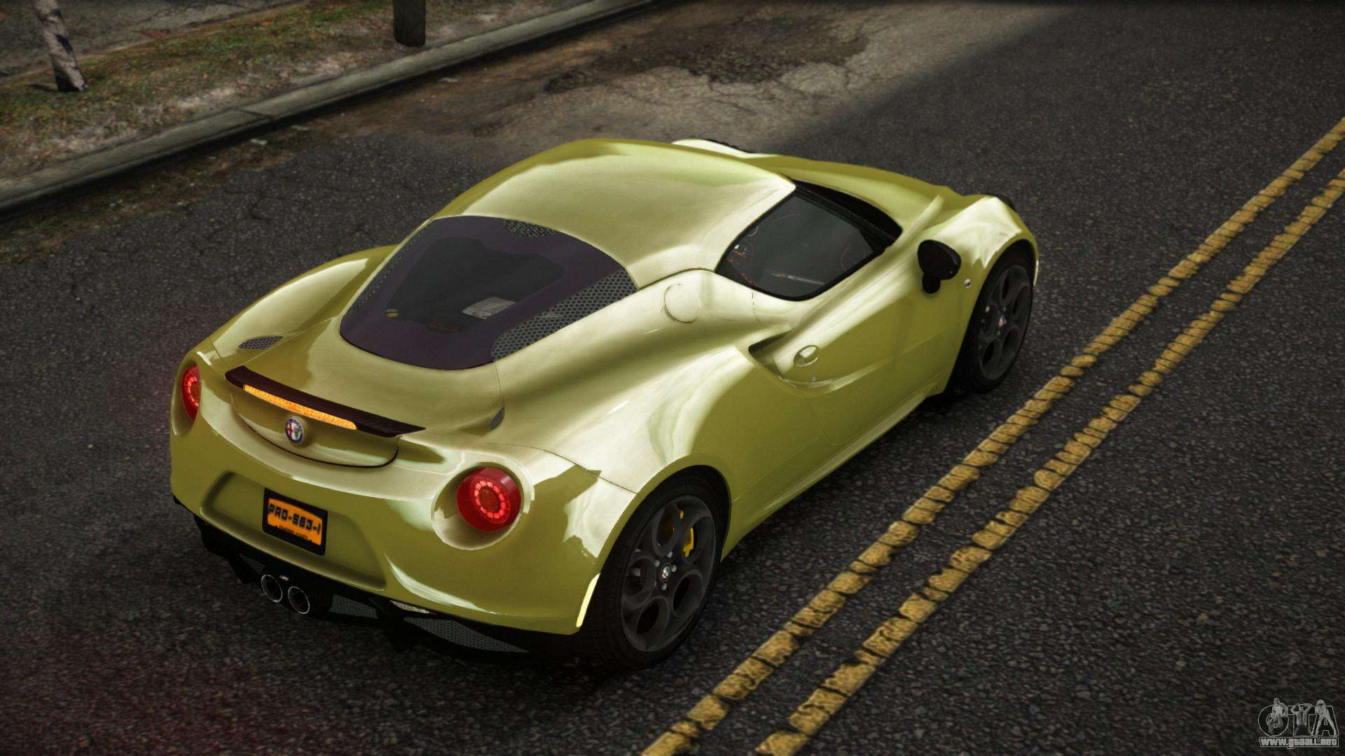 Puedes apreciar todo el encanto del coche descargando el mod Alfa Romeo 4C Thysteus para GTA 4 haciendo clic en los enlaces de abajo. El mod se instala automáticamente con dos clics, por defecto reemplaza a la Banshee o elige cualquier otro vehículo del juego que quieras transformar.