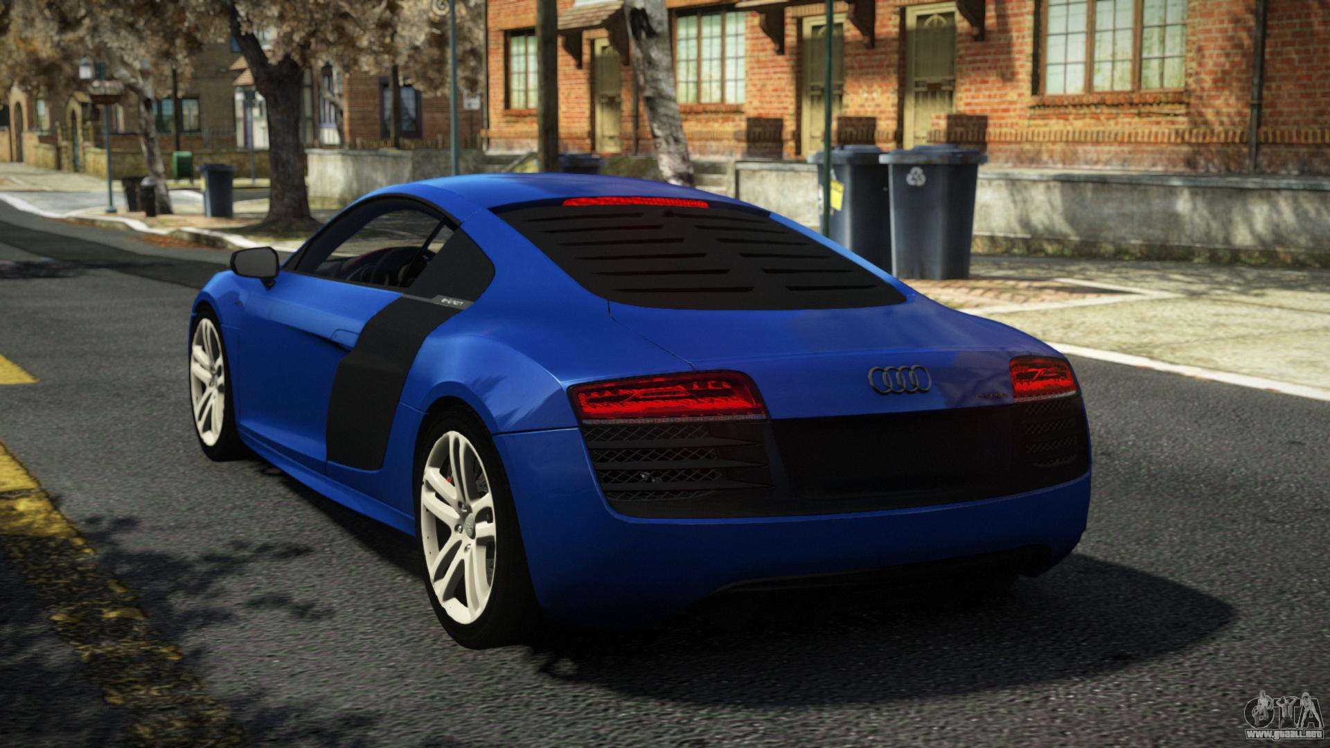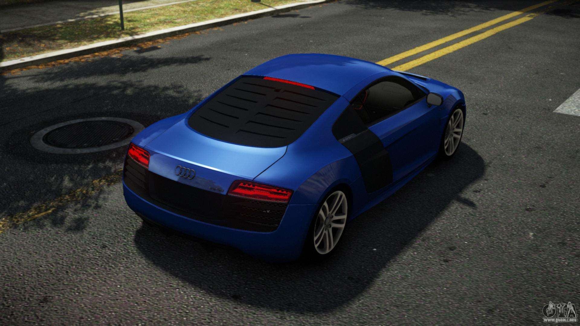 ¡Esto es lo que necesitas! Sigue los enlaces de abajo para descargar gratis el mod Audi R8 Domgemi para GTA 4. La configuración predeterminada es reemplazar Turismo, o con la ayuda del mismo instalador puedes reemplazarlo por cualquier transporte estándar.