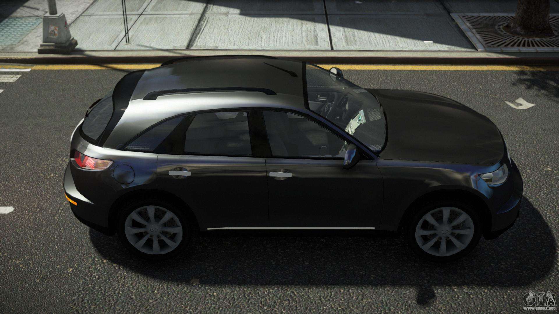 Puedes descargar gratis el mod de coche Infiniti FX45 Picpida para GTA 4 haciendo clic en el enlace de abajo. Instalación automática, por defecto para reemplazar a Landstalker, o con la ayuda del instalador, puedes elegir cualquier otro coche estándar del juego.
