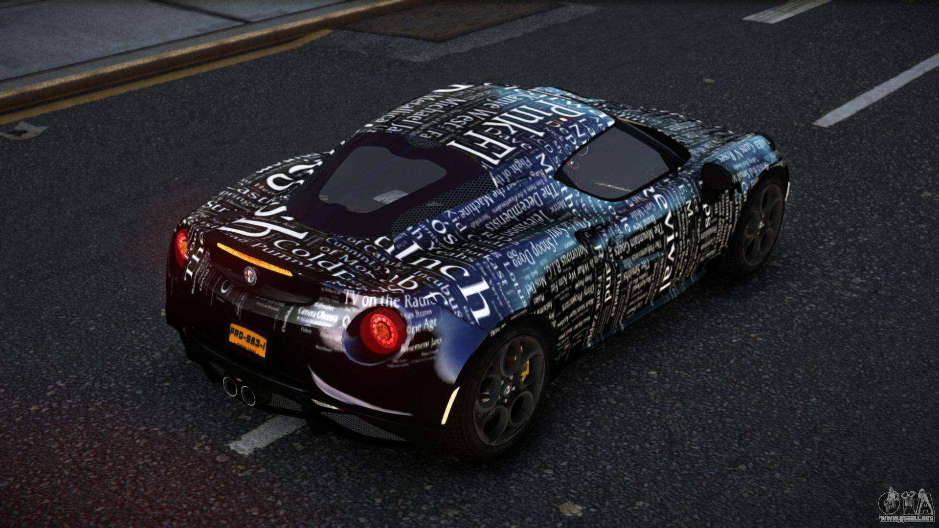 Puedes descargar gratis el Alfa Romeo 4C Ronzi S5 para GTA 4 haciendo clic en el enlace de abajo. Instalación automática, por defecto para reemplazar la Banshee, o con la ayuda del instalador puedes elegir cualquier otro coche estándar del juego.