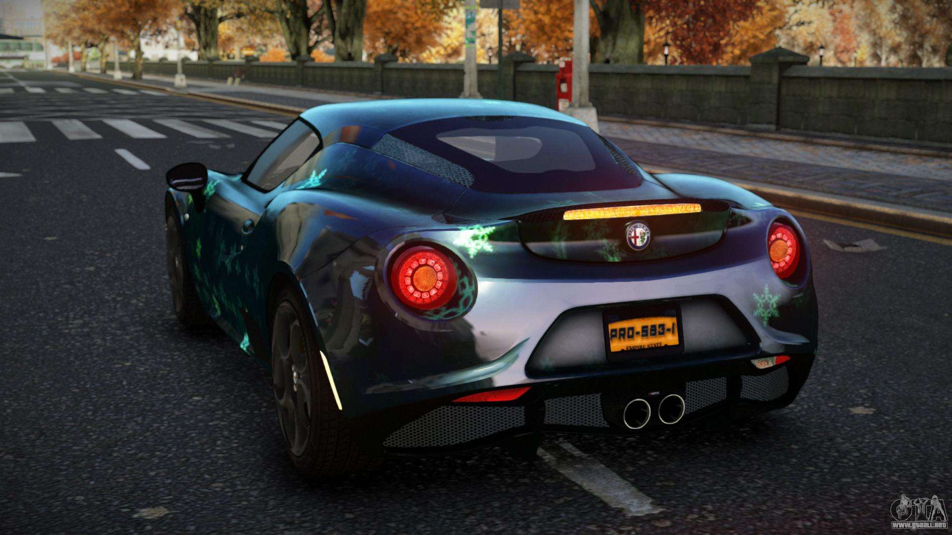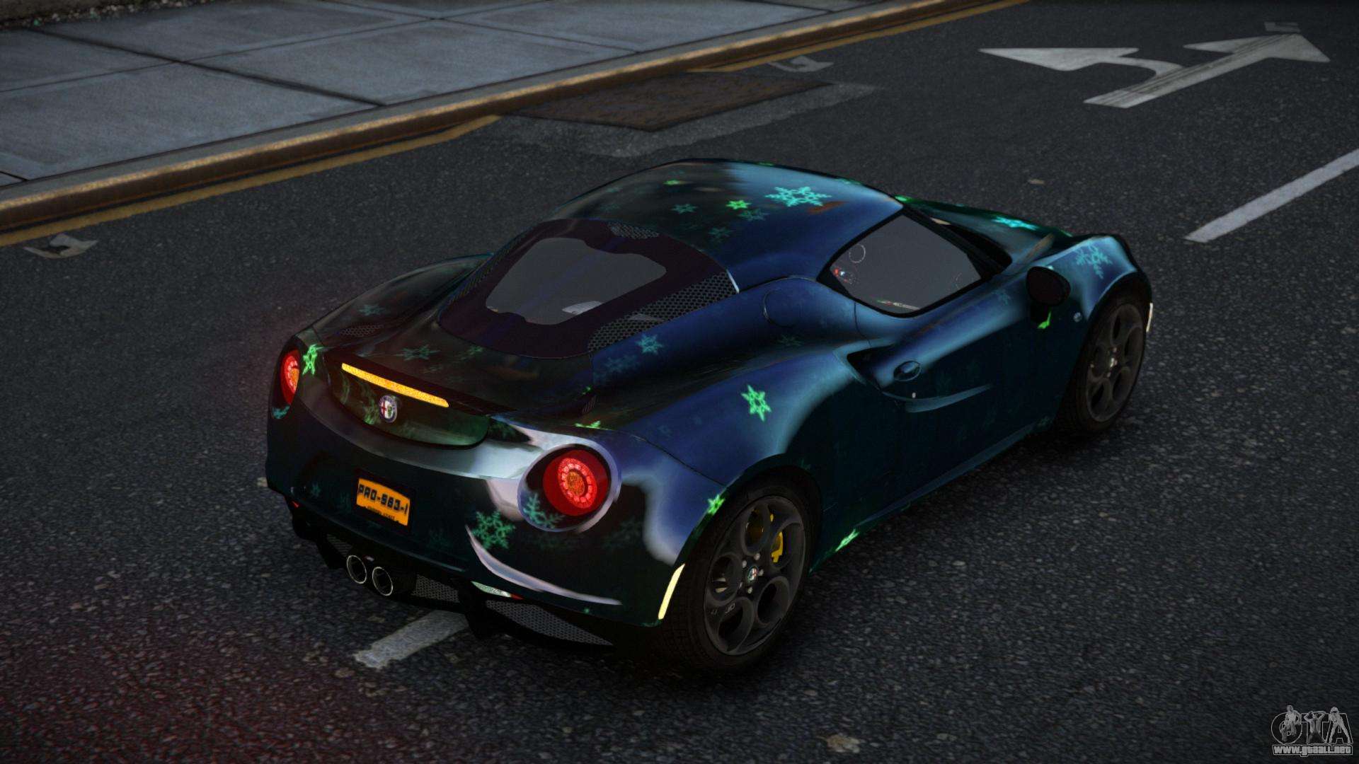 La modificación Alfa Romeo 4C Ronzi S13 para GTA 4 se puede descargar a continuación en los enlaces. La modificación se instala automáticamente por defecto para reemplazar la Banshee, y con la ayuda de nuestro instalador también puedes sustituirla por cualquier vehículo estándar del juego.