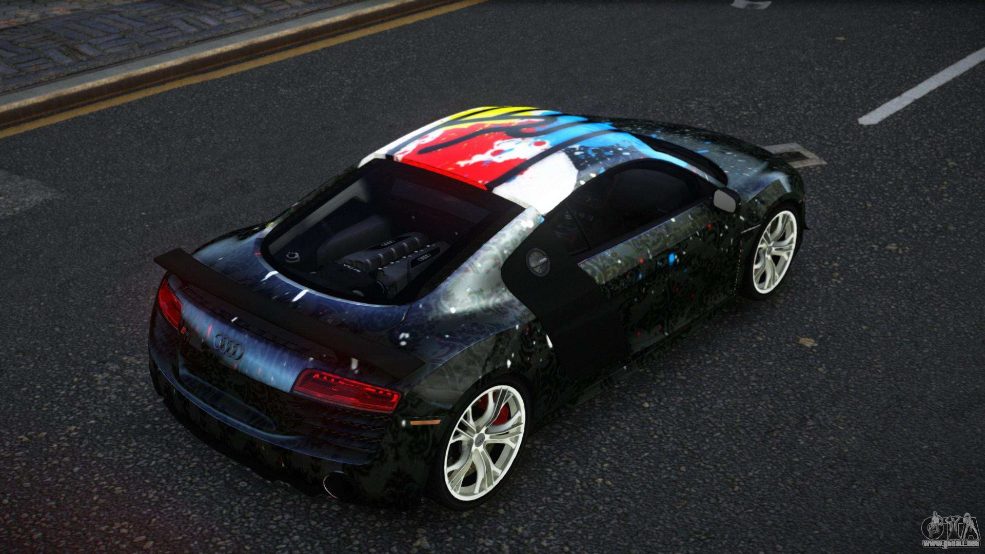 La modificación Audi R8 Katian S3 para GTA 4 se puede descargar a continuación en los enlaces. La modificación se instala automáticamente por defecto para reemplazar la Banshee, y con la ayuda de nuestro instalador también puedes sustituirla por cualquier vehículo estándar del juego.